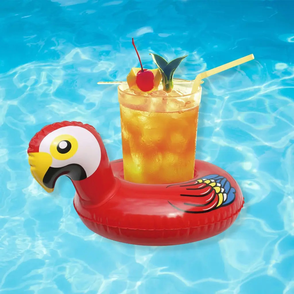 Add some tropical fun to your pool day with this inflatable floating parrot drink holder! Measuring 10 inches, this colorful pool accessory is easy to inflate and deflate for quick use and storage. It securely holds a 12 oz. can of soda or a plastic cup, keeping your drink within reach while you relax in the water. Perfect for ages 3 and up, this parrot drink float is a playful and practical addition to any pool party or summer gathering. Product Features: Easy to inflate and deflate Recommended age: 3 and up Can hold a 12 oz. can of pop or plastic cup Dimensions: Overall: 5"H x 10"W x 7"D Center cup holder: 3" diameter Material(s): PVC