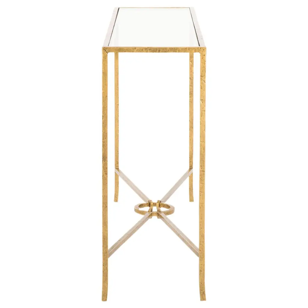 Introduce an element of modern sophistication to your home with the Novanan Forged Iron Rectangle Console Table. Symmetrical in structure, this sleek design brings a sophisticated touch to your space. Crafted from enduring forged iron, this console table is a testament to smart engineering and elegant charm. The clear glass top adds an airy outlook while subtly showcasing the impressive ironwork below. Whether placed in your entryway, living room, or hallway, this console table is sure to enhance your interior decor with its blend of industrial chic and contemporary elegance.