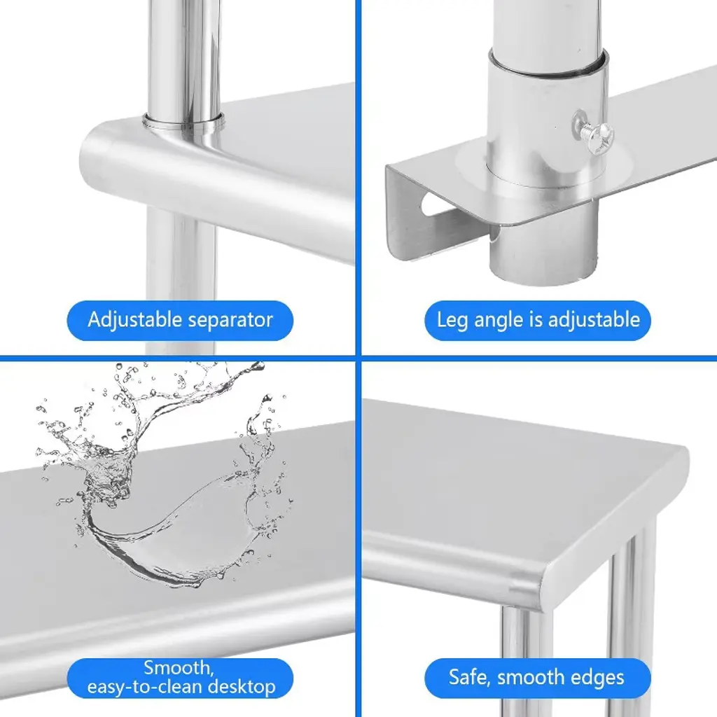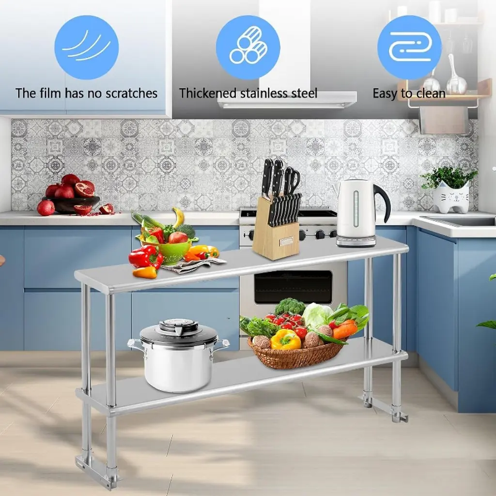 Versatile Usage: This spacious work table is not limited to kitchen use alone. It is a versatile addition suitable for various settings, including garages, workshops, bars, restaurants, laundries, warehouses, and other commercial spaces.Whether used as a repair station, workbench, or general workspace, it offers practical functionality across diverse environments. Additionally, it can function as a garage workbench, tool bench, or outdoor table, making it an invaluable asset for any