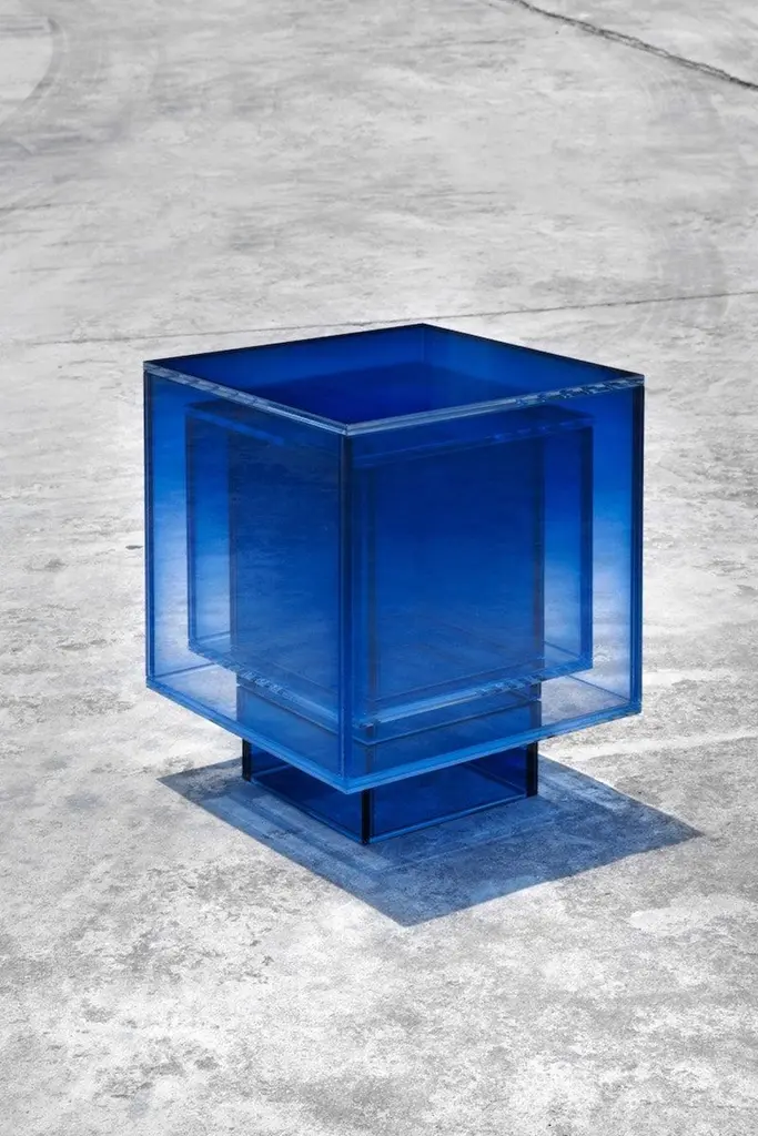 Null Blue Glass Clear Transition Color Square Table By Studio Buzao Customizable