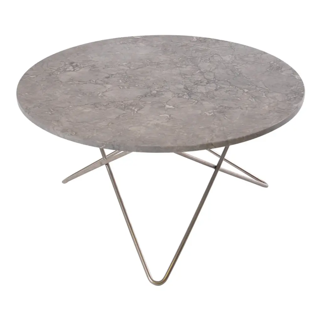 Frame made in stainless steel, powder coated steel or brass (steel with brass surface). Marble tops are to be screwed on to the metal frame. Glass tops can be clicked onto the frame. Leather tables will be delivered assembled. Table tops in Carrara Marble, Black Marquina, Green Indio, Grey Italian (mat) and Brown Emparador will exhibit natural variations in terms of colour, drawings and patterns characteristic for each type of marble. As for Carrara Marble, small cracks can sometimes be found on the polished surface. This phenomenon known as “taroli" is a natural characteristic of the stone, which cannot be eliminated completely. Leather is handmade by skilled craftsmen using high-quality 100 % vegetable tanned aniline leather with a general thickness of 3 mm or more. Natural imperfections on leather surface must be accepted. With time, light and use, the leather will gain depth and lustre as it ages. Due to the highly artisan process used and variation in the natural raw material, leather can wary quite significantly in colour between production batches.