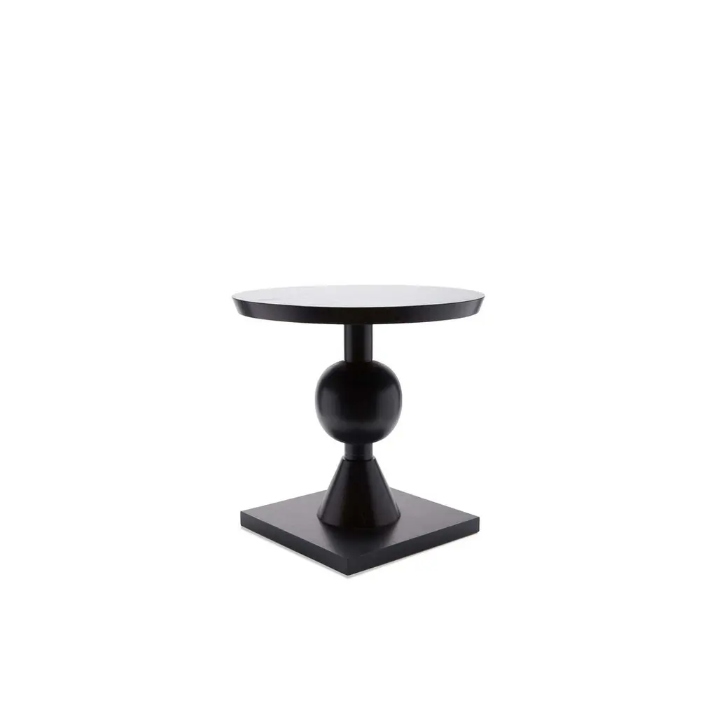 The Sur table features a series of geometric shapes stacked on top of each other with solid wood details. Available in American walnut or white oak. Shown here in ebonized oak and white washed oak. The Lawson-Fenning Collection is designed and handmade in Los Angeles, California. Reach out to discover what options are currently in stock.