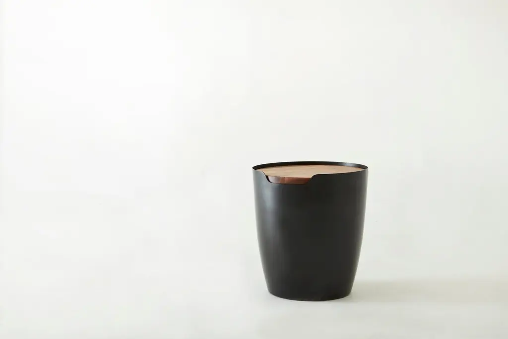 Oak tall basin coffee - side table by Hollis & MorrisDimensions: Diameter 18" x H 16.75"Materials: Solid wood. Spun aluminium. Hard wax oil, powder-coated metal.Also available in natural oak, black oak, glass, and walnut. And, white or black powder-coated or customized finish. Anodized metal upon request.Beauty through thoughtful, function-inspired design. A spun aluminium basin is accented by rich oak or walnut, offering sheltered storage. Robust hidden brackets support the solid wood table top while a subtle dip in the metal provides a mouth to access the contents within.Based out of Toronto, Hollis & Morris takes its name from an intersection in Halifax where the company started as a series of garage explorations in design. A steadfast commitment to function with a distinctive approach to design. Hollis & Morris creates handmade furniture and lighting which carefully balances modern and honest designs. Versatile, well crafted, and timeless. Pieces by Hollis & Morris easily complement residential, commercial, and hospitality spaces. Driven by respect towards natural and honest processes, trademark integrations of solid wood and metal celebrate the inherent strengths of each Material, resulting in thoughtful, quality pieces made to last with you throughout the years.