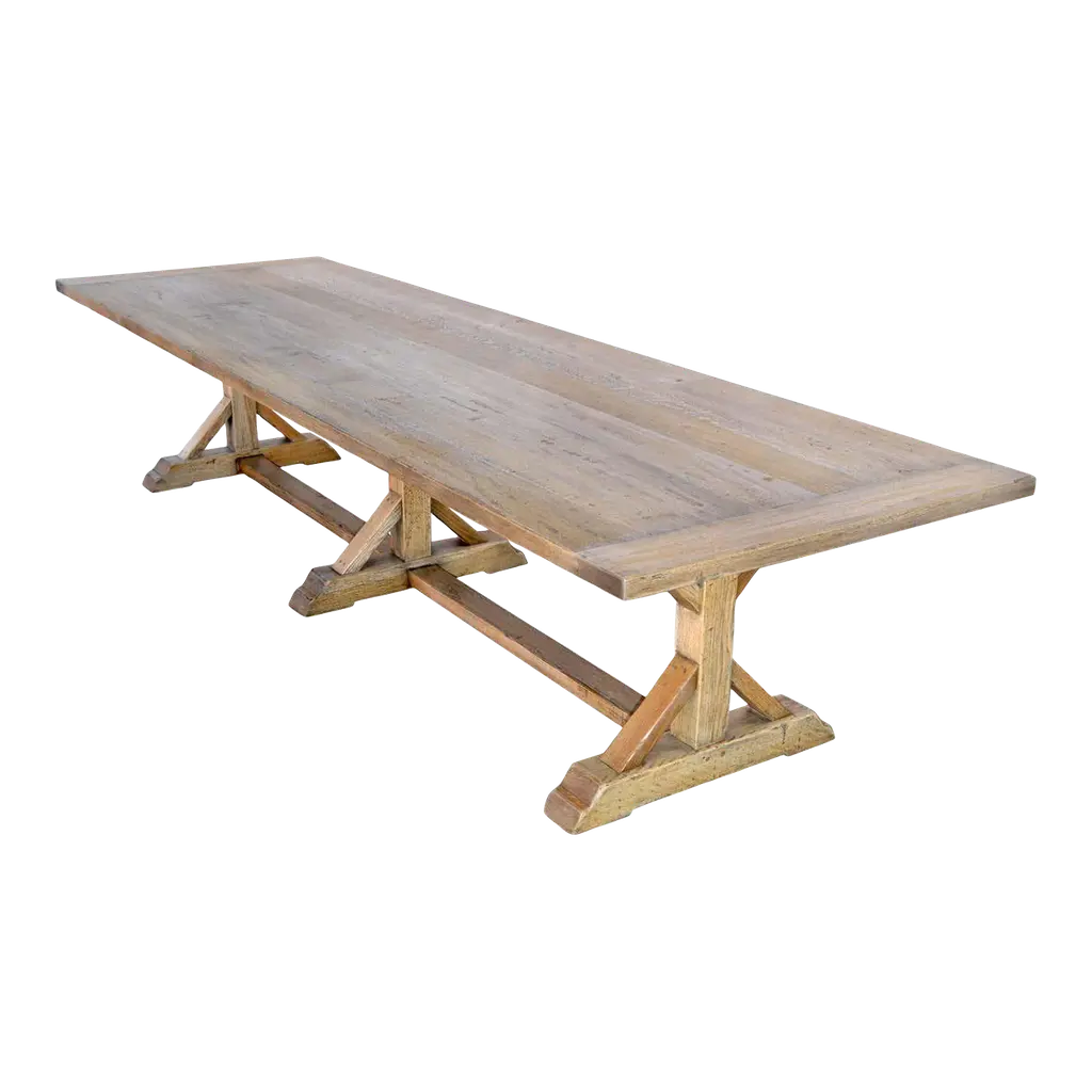 Oak Trestle Table With Painted Base, Built To Order By Petersen Antiques
