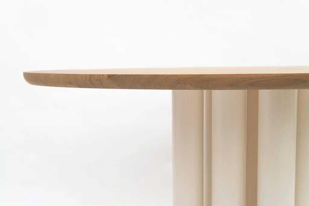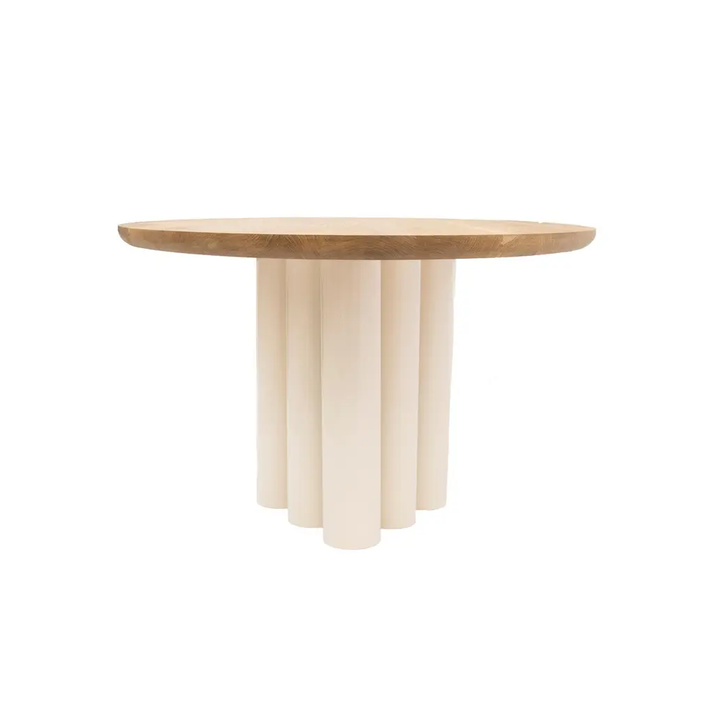Object 072 Table by NG DesignDimensions: D170 x W90 x H76 cmMaterials: Powder coated steel, Solid OakAlso Available: All of objects available in different materials and colors on demand. The elliptical shape and the central leg formed by eight ecru colored pipes is the proposal of our latest table. A hand-brushed oak wood top in a natural tone, rounded at the bottom, combined with a solid base, creates a perfectly coherent shape."Our brand was created out of a passion for unconventional design. The furniture we produce is characterized by the highest quality and attention to detail. Each piece of furniture is handmade in Poland and its design defies a traditional approach. standard of interior design. to an object of uniqueness, which makes it a form in itself".