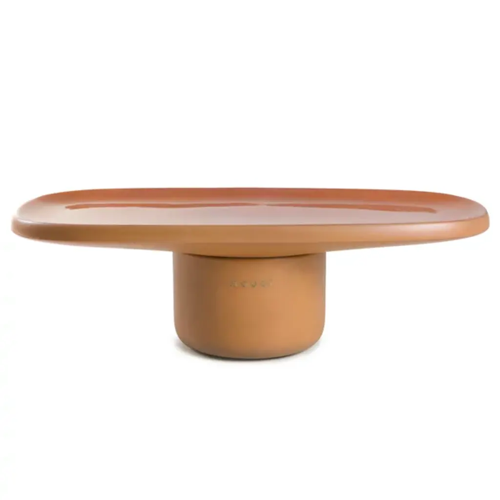 Enduring in craftsmanship and design like ancient terra-cotta pieces. The Obon Table from Moooi creates an instant visual connection with smooth, seductive shapes in familiar tones. Creator Simone Bonanni approaches each piece with the idea that aesthetics should be the consequence of a piece’s essence, function, and meaning. This ceramic piece evokes classic pots in its clean drum base. The tabletop separates itself visually in its recessed shape and reflective glaze. The balanced piece brings a relaxed character to the living space.
