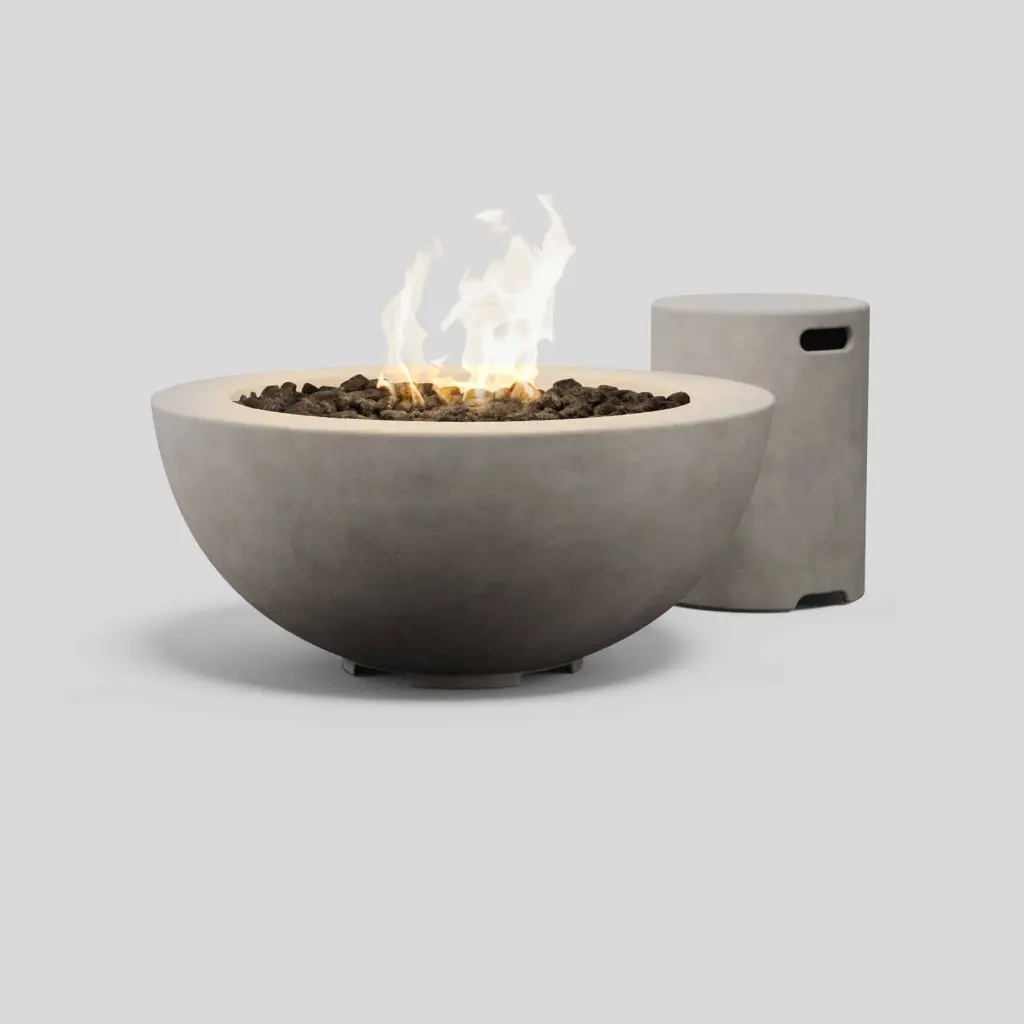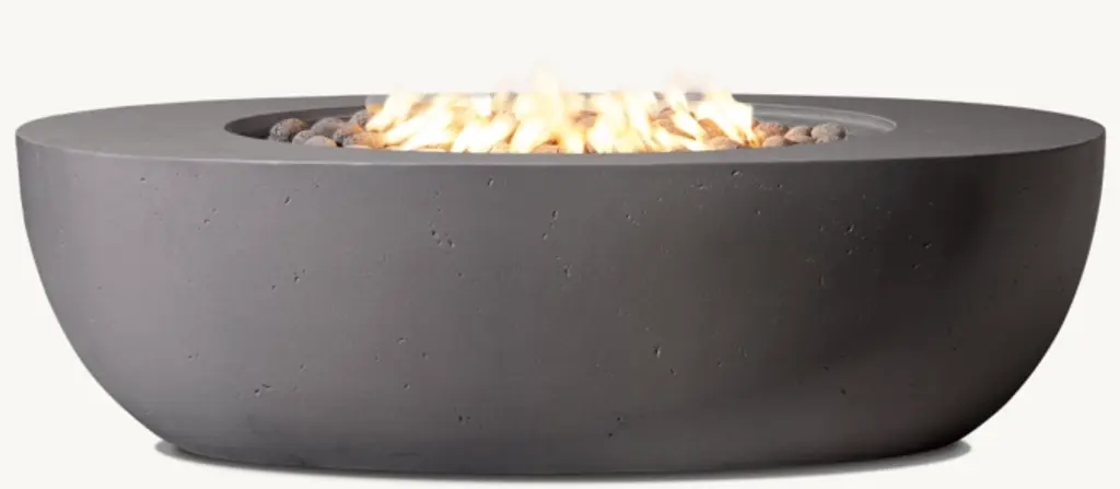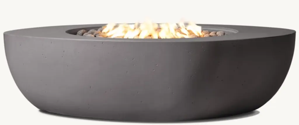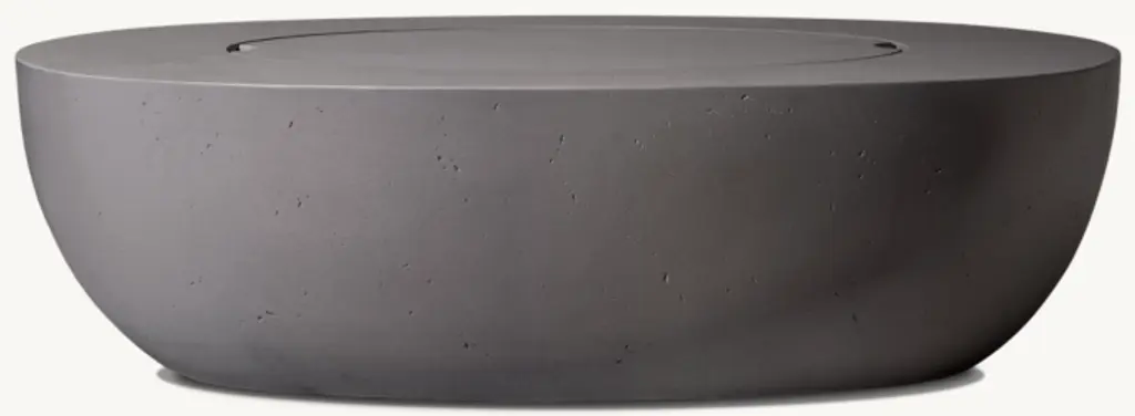 Echoing the look and feel of natural limestone, our fire table's rounded profile and rustic texture bring organic presence to outdoor spaces. Handcrafted of durable, glass-fiber-reinforced concrete, it is available in a choice of natural gas or propane.