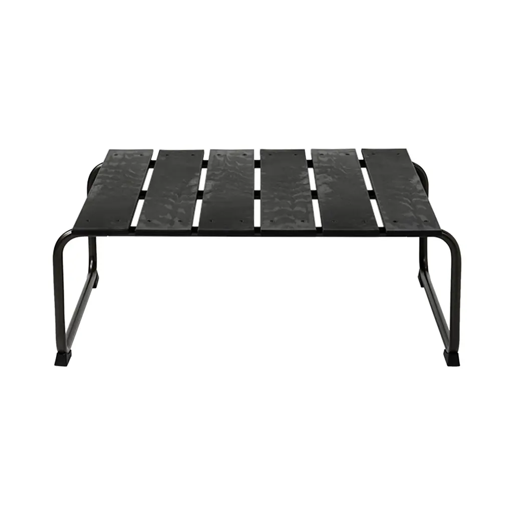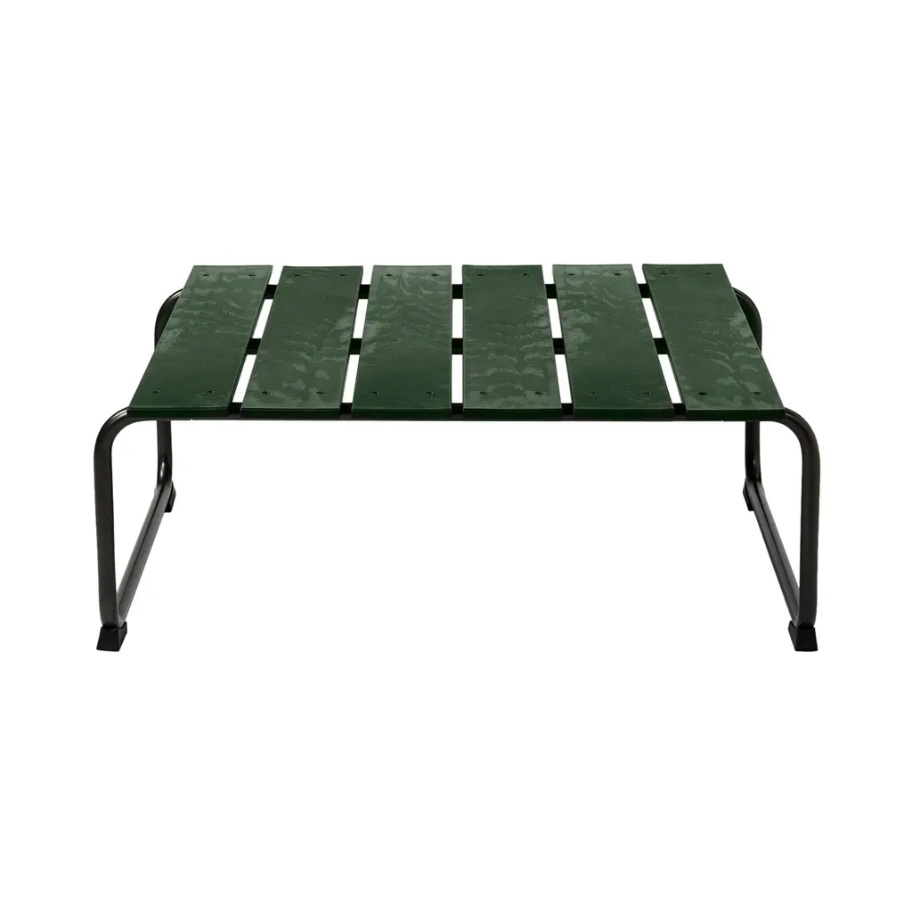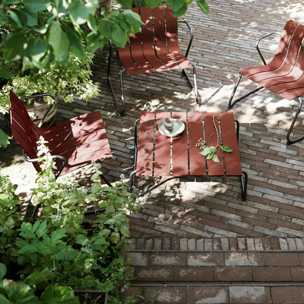 Mater adds a sizable low table to its ecologically reimagined Ocean range. Originally in wood veneer, the outdoor series designed in 1955 by Jørgen and Nanna Ditzel is now reissued with its slats made from discarded fishing nets mixed with upcycled hard plastic—more than 3 pounds of ocean waste in this piece. Durable for both private and public use, the table has a sleekly curving steel-tube frame in a gunmetal finish.