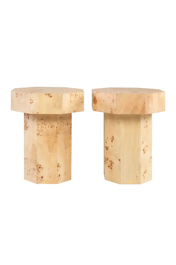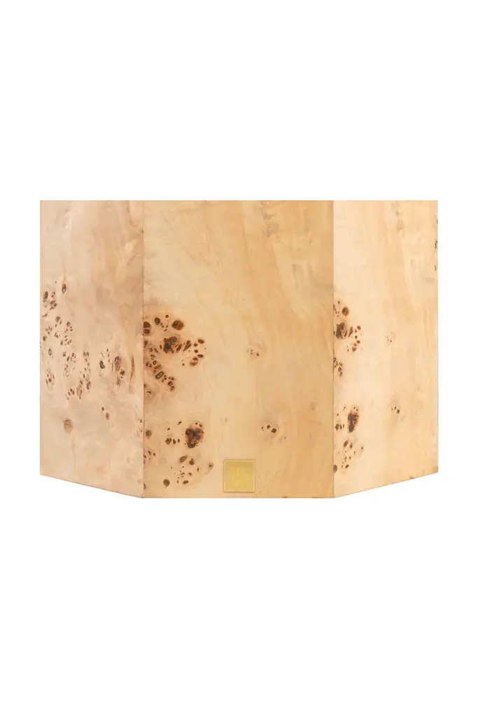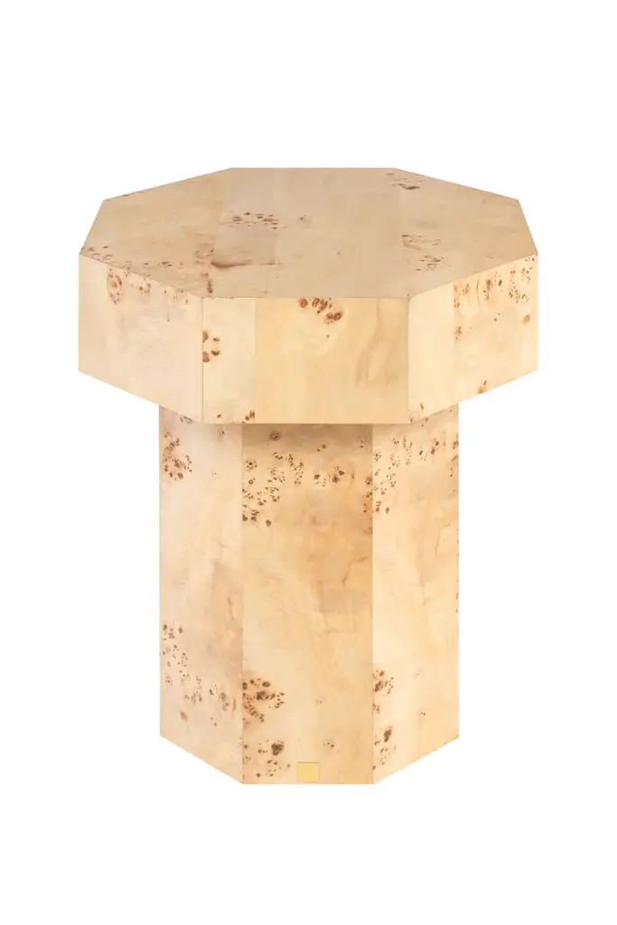 Infuse a distinct character to our living space with the Baka Occasional Table by Versmissen. This table is meticulously constructed using Mappa Burl Veneer, a material that exudes elegance and sophistication. It features an octagonal top and pedestal base, exuding an eye-catching design that sets it apart from the ordinary.