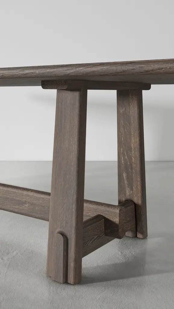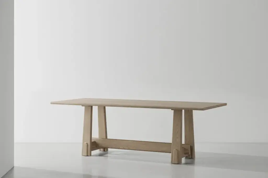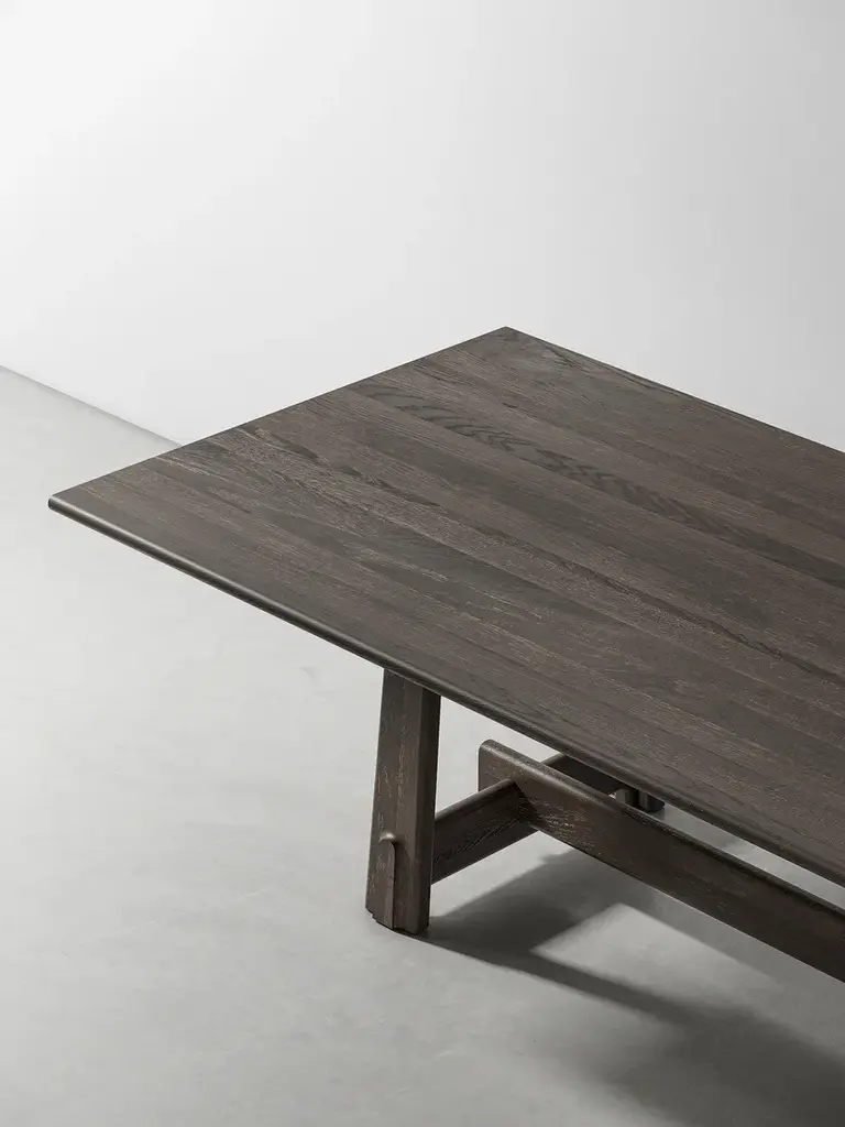 Odette Collection draws inspiration from the enduring structures of Eastern architecture and objects, offering an appreciation for both cultural heritage and lasting craftsmanship. Crafted entirely from solid wood, the legs feature hand-finished convex and concave details, creating a visual illusion timber jostling against one another. Reinforced with a supporting beam, the traditional trapezoid-shaped legs provide a strong and dependable foundation, while other timber details give Odette a striking resemblance to a pagoda’s gateOdette Collection draws inspiration from the enduring structures of Eastern architecture and objects, offering an appreciation for both cultural heritage and lasting craftsmanship. Crafted entirely from solid wood, the legs feature hand-finished convex and concave details, creating a visual illusion timber jostling against one another. Reinforced with a supporting beam, the traditional trapezoid-shaped legs provide a strong and dependable foundation, while other timber details give Odette a striking resemblance to a pagoda’s gate.PRODUCT MATERIALOak/Engineered wood