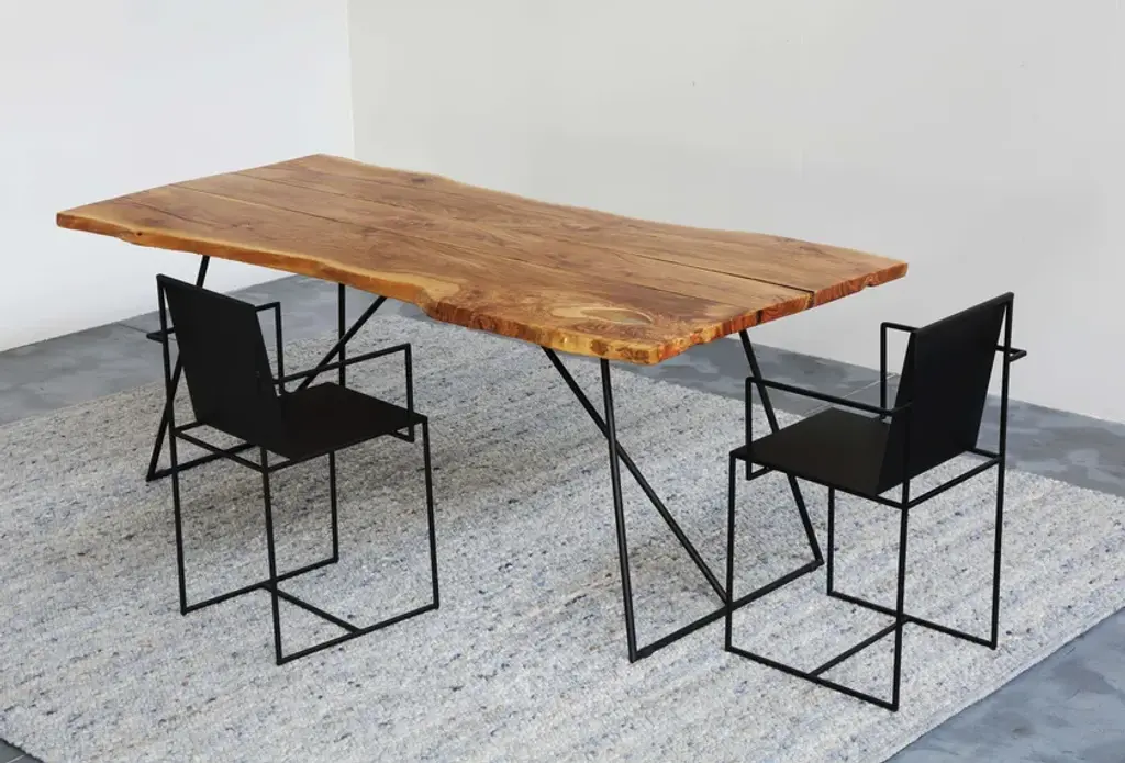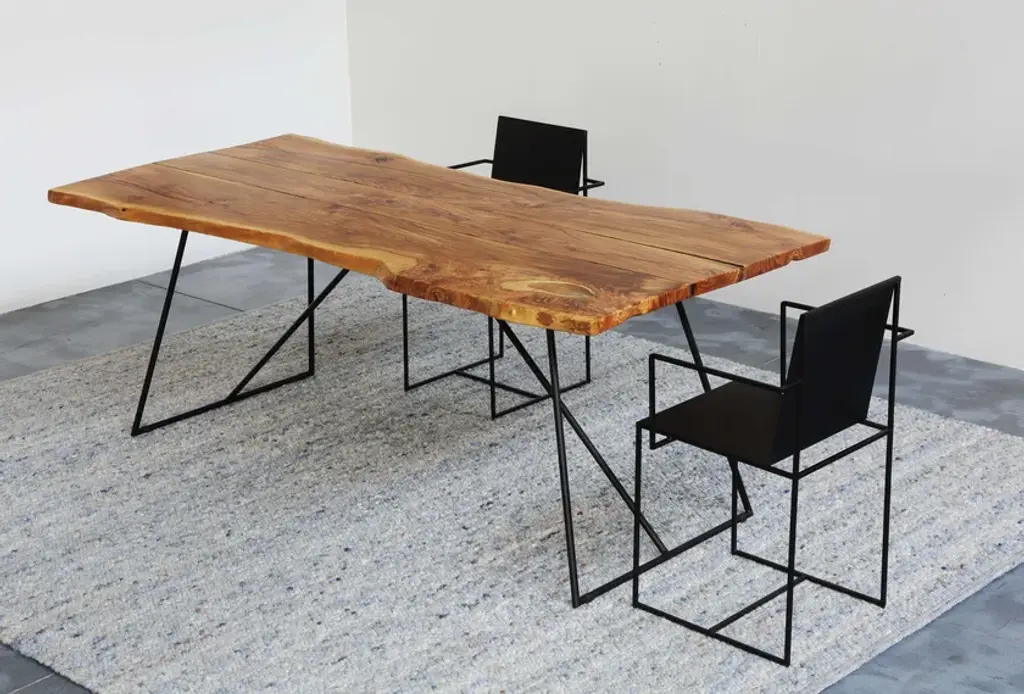 Old Times is a rectangular solid wood table.Frame: Copper black sand-touchTop: Aged solid olive wood, polishedCharacteristics:Olive tree is known not only for its resistance and hardness but especially for its flame aspect and its artistic chromatic grains. Each piece is entirely made by hand and therefore unique. Buying a product in massive olive wood you have to know and accept that with time it will change: splits and cracks are the characteristics of unique pieces.