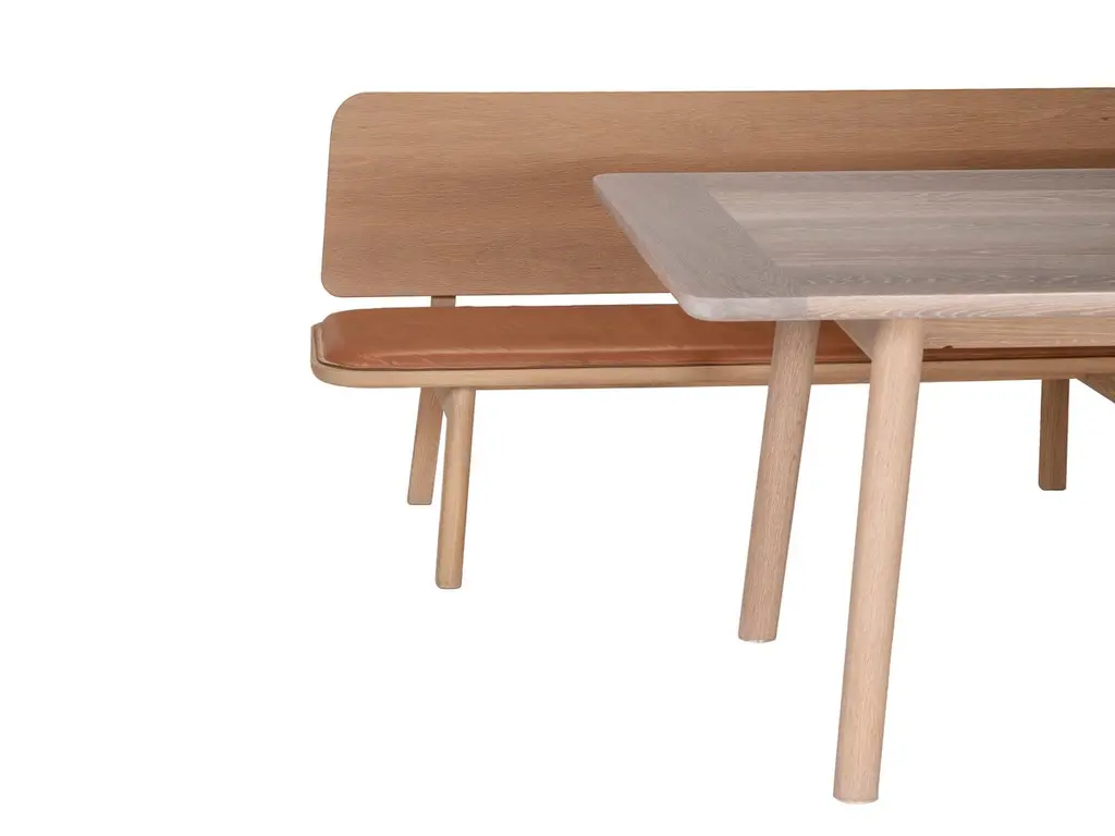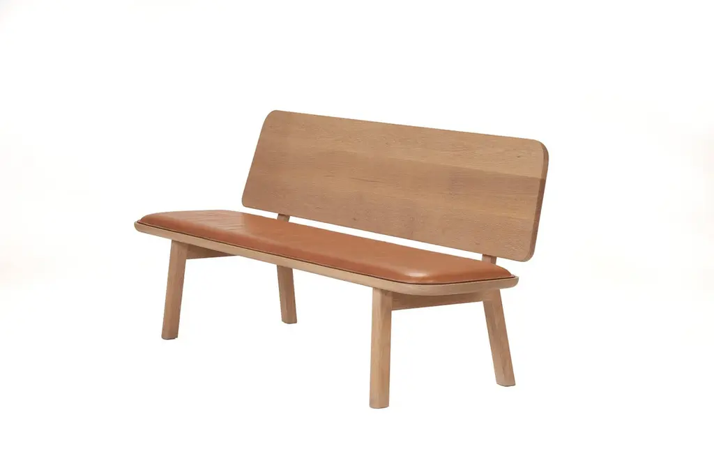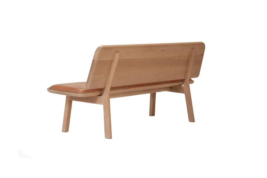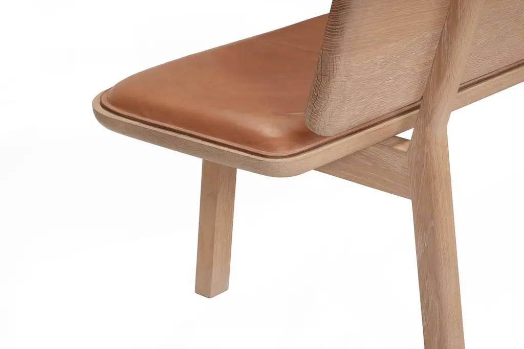 Olo Bench, Solid White Oak, Hand-Stitched Vegetable Tanned Leather Upholstery