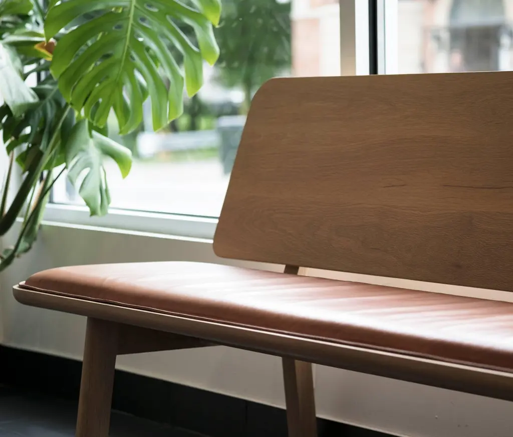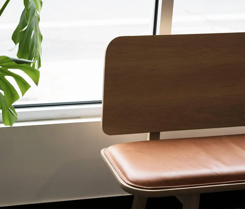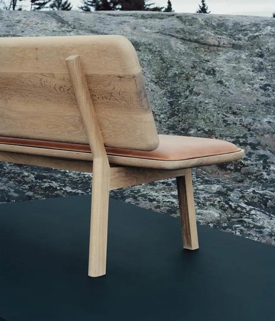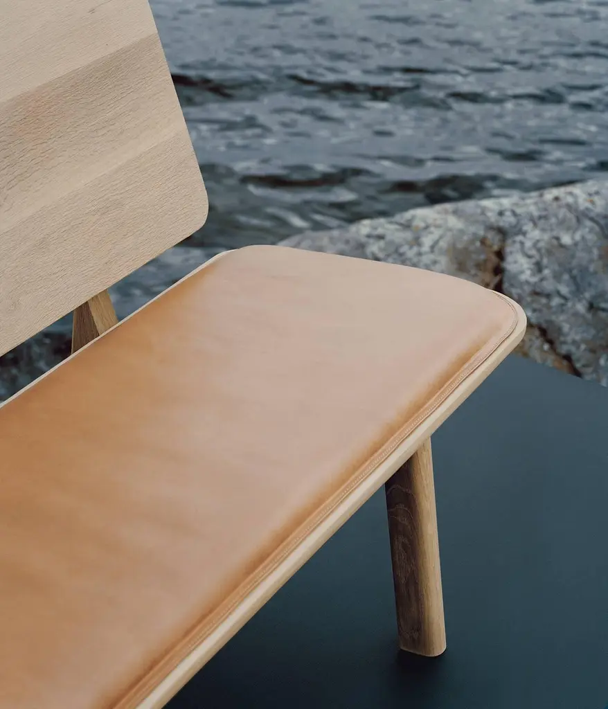 Olo Bench, Solid White Oak, Hand-Stitched Vegetable Tanned Leather Upholstery