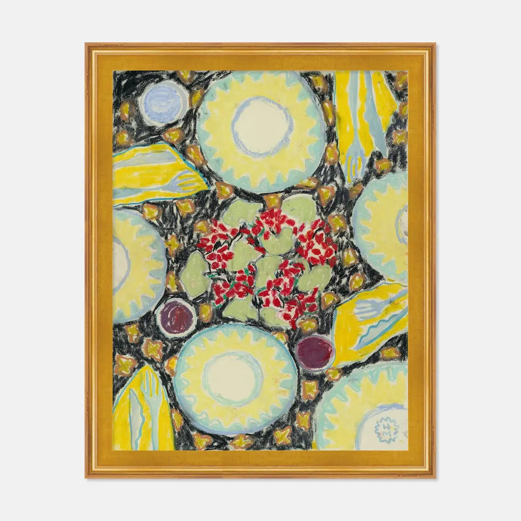 DESCRIPTION: On the Table by Happy Menocal in Gold Frame, XS Art Print SPECIFICATIONS: Type: Framed Paper. Framed Size (in): 14x16. Orientation: Vertical. Flush/Float/Matted: Flush. Frame Color: Gold. Hanging Hardware: Picture Perfect. FRAMING: Each art work arrives framed and ready to hang. We use handmade frames with a plexiglass glazing front, because it offers less glare than standard glass. At this time, we only offer framed prints. ARTIST BIO: Happy Menocal is a New York-based artist and creative director. She is known for her spirited illustration style and profligate use of color. Founded in 2012, her studio specializes in personal and corporate event stationery, brand identity, murals and textile design for private clients and hospitality groups.