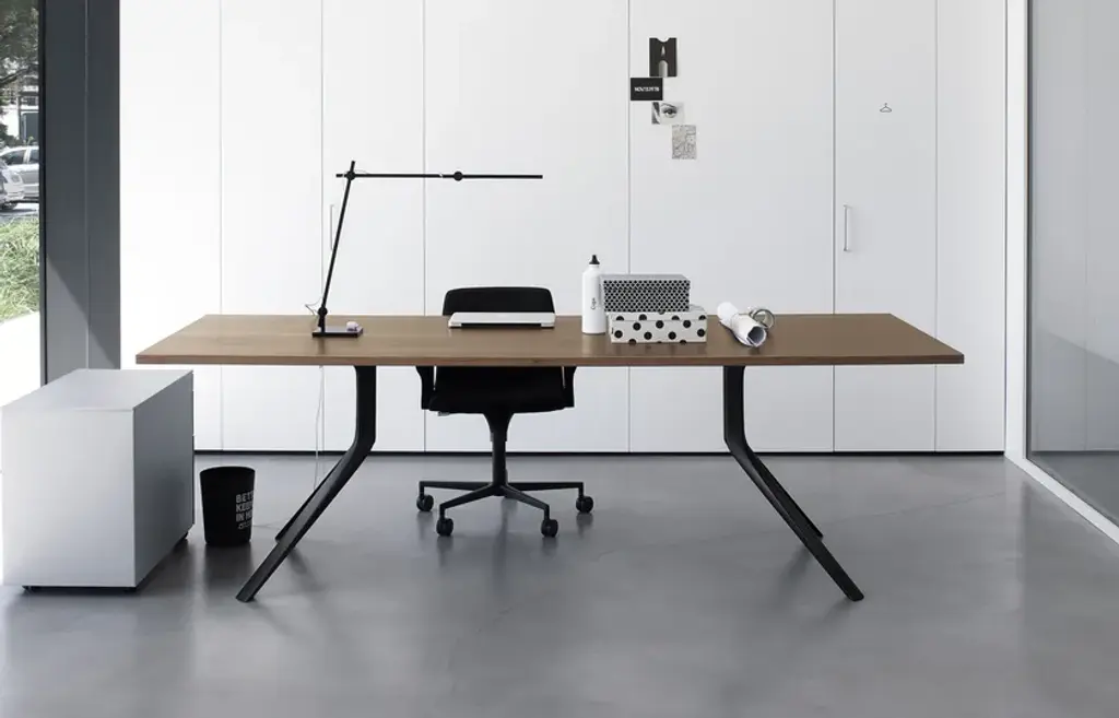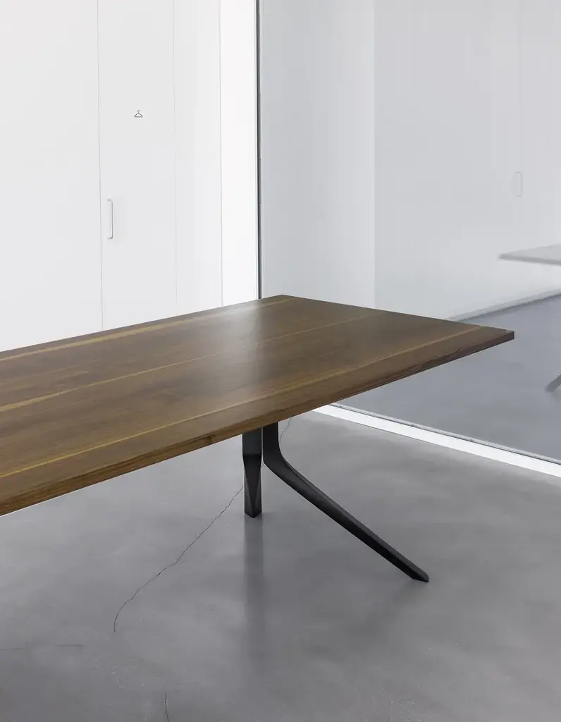 Designed by Monica Graffeo in 2006, Oops is an extendable table with an aluminium base and a 50mm thick lacquered top that extends from a round to an ellipsoidal shape. In technical terms, this table is impeccable when closed or open due to its aesthetic appeal and sturdiness. In 2016, the collection was extended: the Oops I Did It Again range now includes two fixed tables with a round top and a fixed table with a rectangular top, available in different sizes. The legs are made of die-cast aluminium with a brushed or powder-coated lacquer finish. They can be combined as required with a top in laminate, Fenix-NTM® or wood veneer.