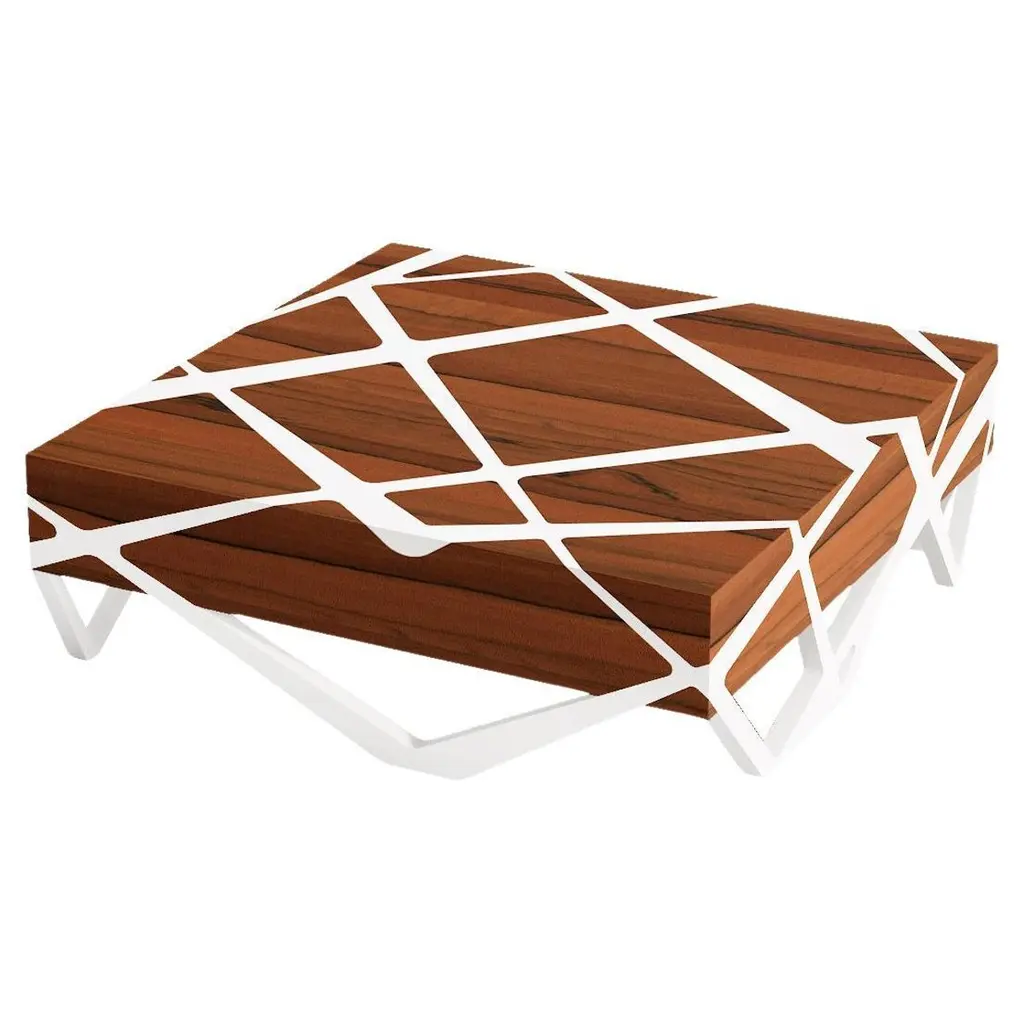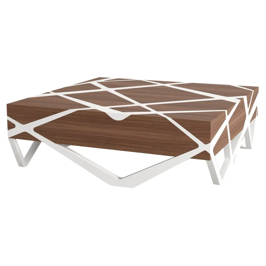 Organic Modern Accent Square Center Coffee Table Walnut Wood And White Lacquer