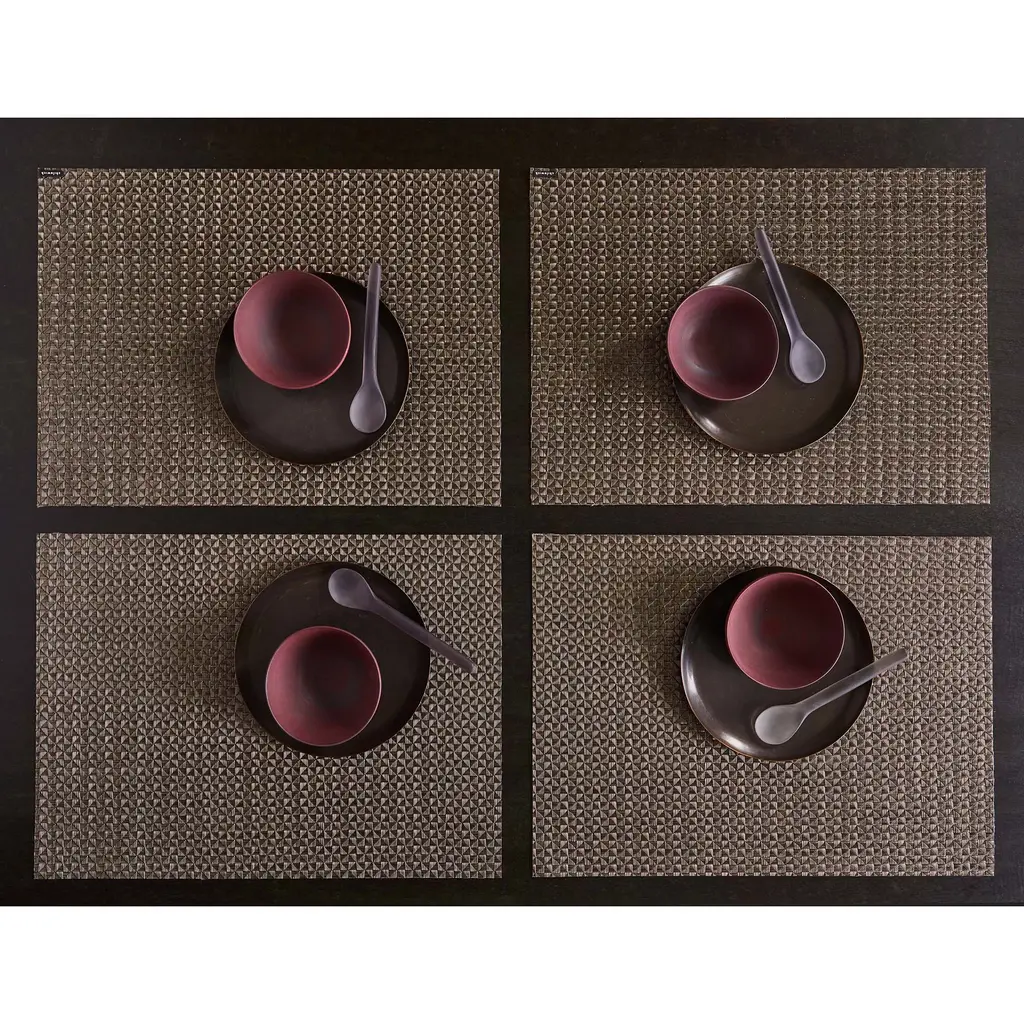 Texture and design unite in this tablemat, featuring a crepe weave with geometric elements. This tablemat is suitable for indoor and outdoor use.