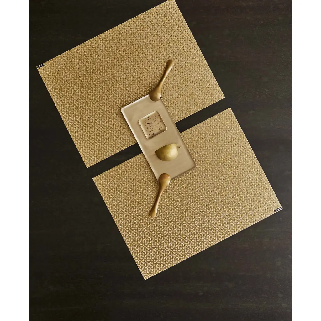 Texture and design unite in this tablemat, featuring a crepe weave with geometric elements. This tablemat is suitable for indoor and outdoor use.