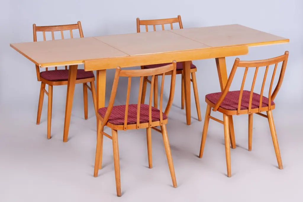 Original Mid-Century Dissociative Table, By Tatra, Beech, Ash, Czech, 1950s