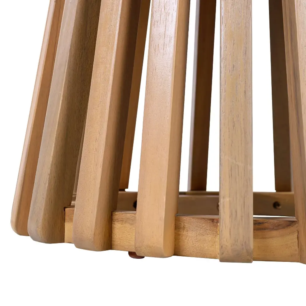 Crafted from weather-resistant acacia wood, this round patio table combines natural durability with light teak aesthetics. Perfect for outdoor living spaces, its versatile 18" diameter fits seamlessly in backyard lounges, balconies or poolside. The sturdy construction withstands elements while adding organic warmth to your decor.