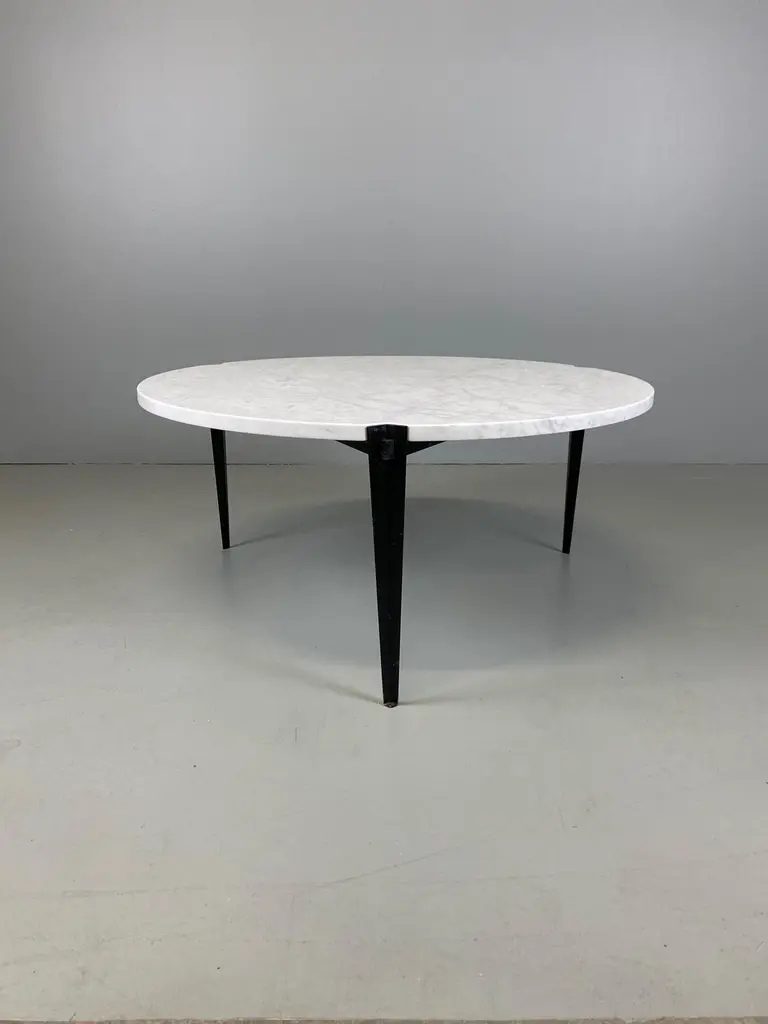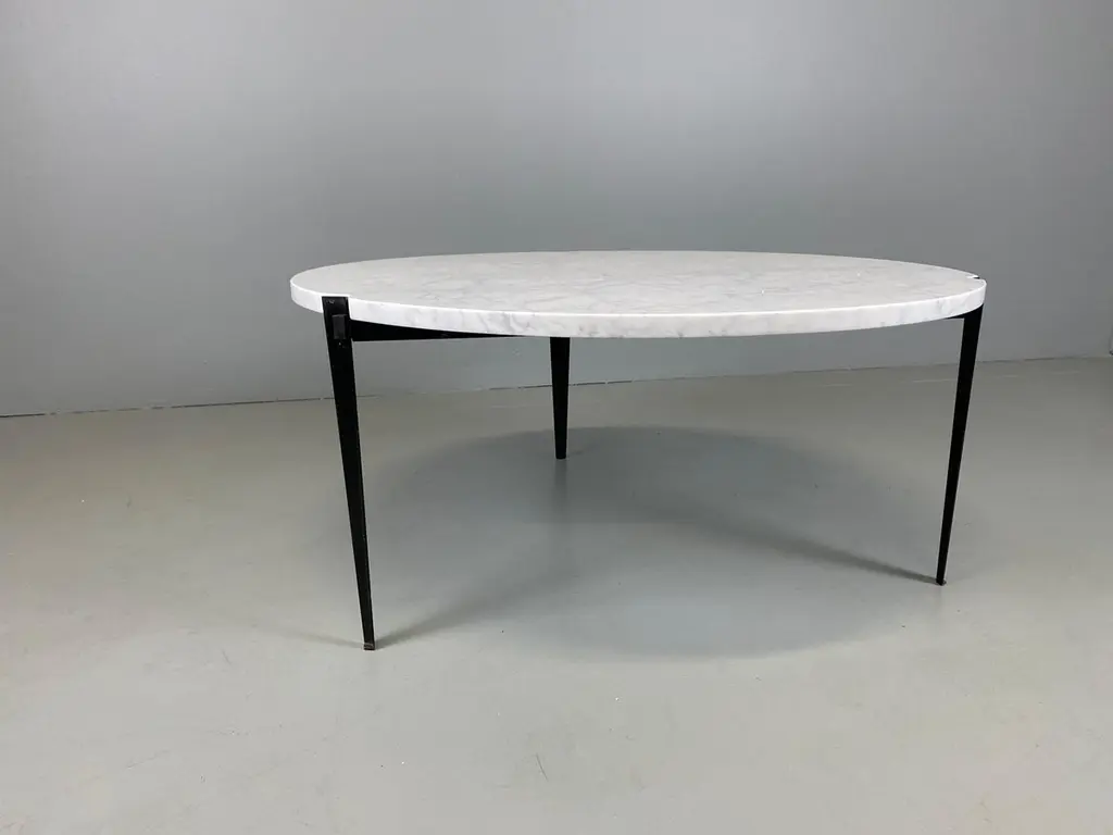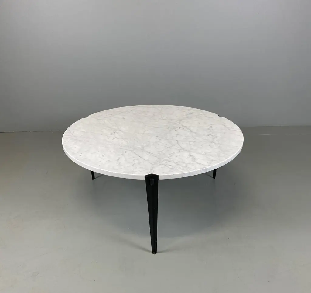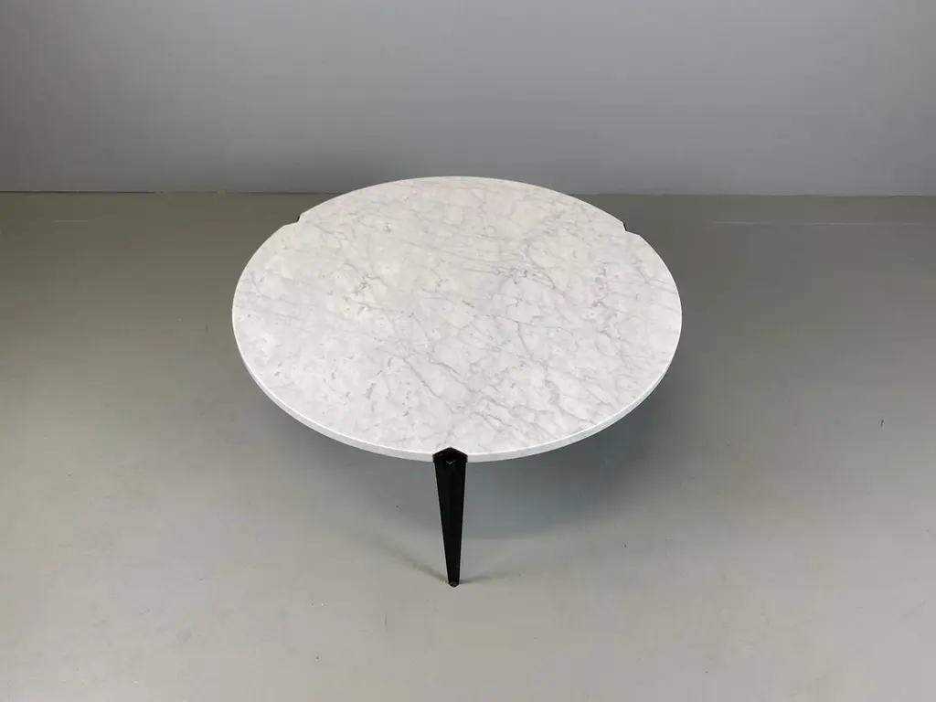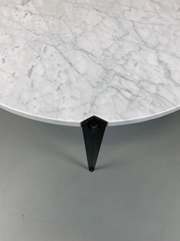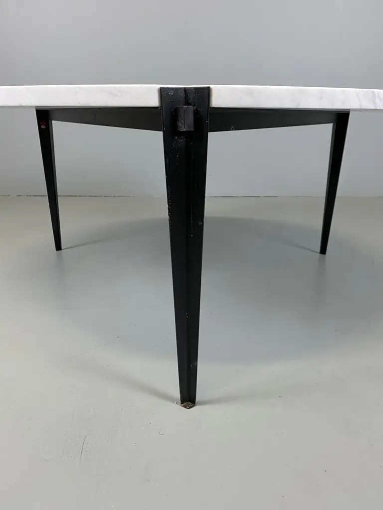 Available twoOsvaldo BorsaniA "T 61c" coffee side table manufactured by Tecno, 1957. Varnished steel and Carrara marble top. Original labelLetteratura: Giampiero Bosoni, Tecno L"eleganza discreta della tecnica, Skira, Milano, 2011, p. 98.