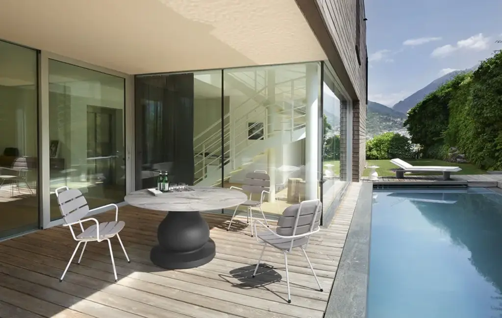Ottocento is a round table with a polyethylene base and an HPL top.Base finish:- standard- special standard- lacquered (glossy / matte)Inspired by the shapes of Neoclassicism, Ottocento is an indoor and outdoor table available in different dimensions. The purity of the material is linked to the classic nature of shapes, which remind of the luxury of marble and the elegance of dark colours. Thanks to a collaboration between the designer and our production department, every table is a unique peace.