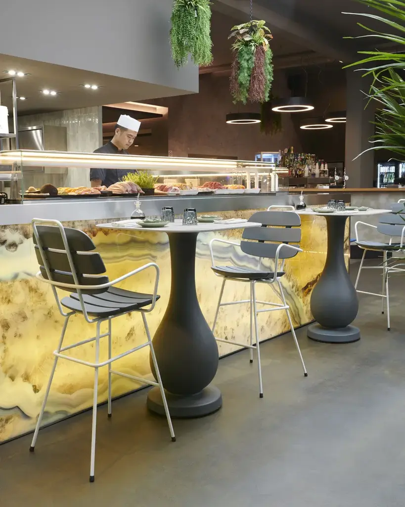 Ottocento Up is the third creation of the tables collection designed by Paola Navone OTTO Studio. Ottocento Up is a tall table, ideal to be combined with the Ribs Up stool from the same collection, and it reminds of the refined neoclassical columns and is completed by an HPL top with natural textures and finishes like the other models in the collection.Inspired by the shapes of Neoclassicism, Ottocento is an indoor and outdoor table available in different dimensions. The purity of the material is linked to the classic nature of shapes, which remind of the luxury of marble and the elegance of dark colours. Thanks to a collaboration between the designer and our production department, every table is a unique peace.