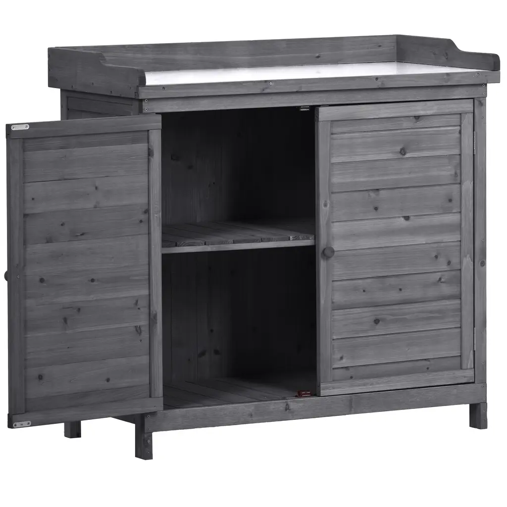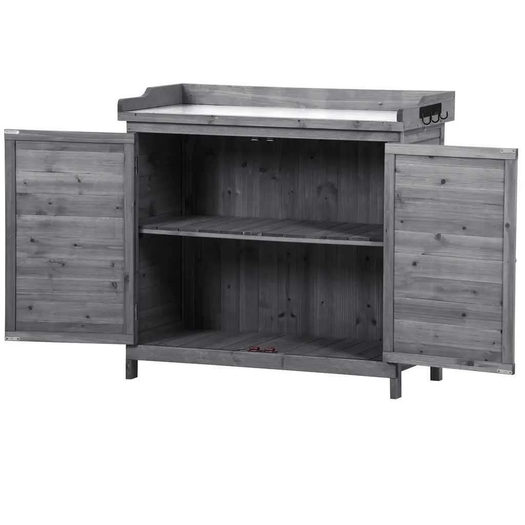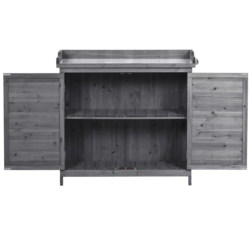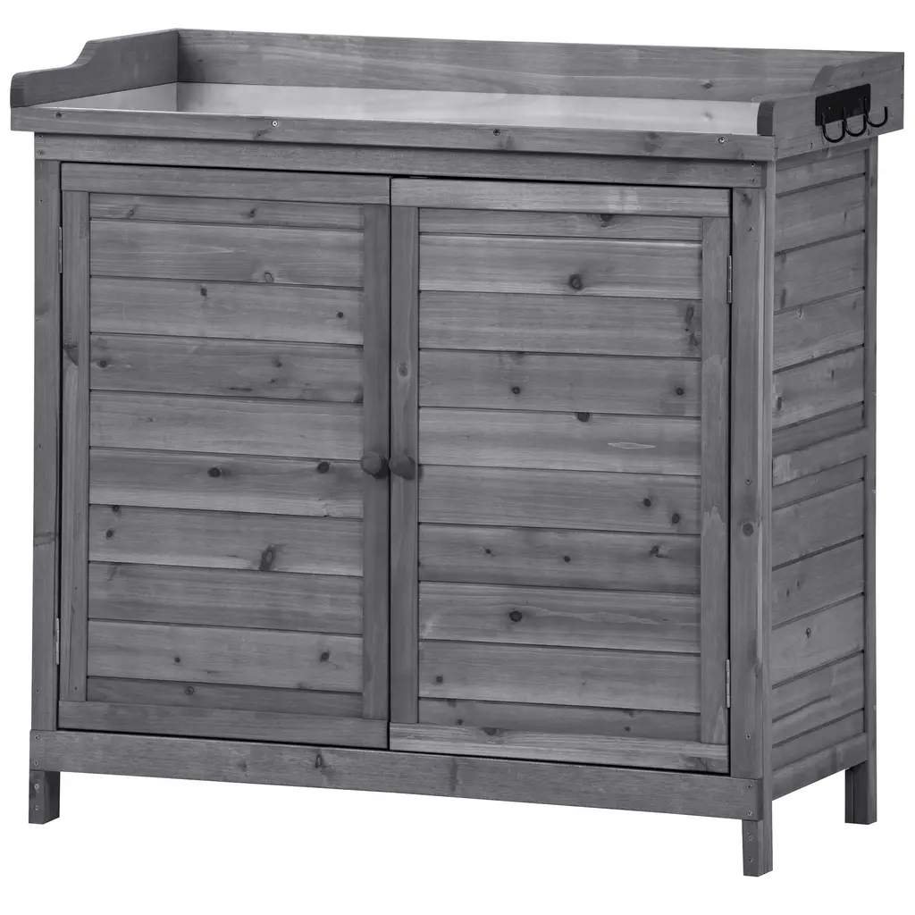 Outdoor 39" Potting Bench Table, Rustic Garden Wood Workstation Storage Cabinet Garden Shed - Grey