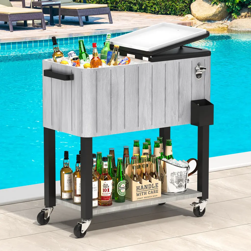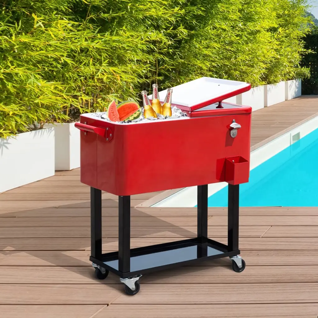 Outdoor Cooler Table, 4 Gallon Portable Patio Cooler Side Table With Handle, Bottle Opener And Lift Top Lid
