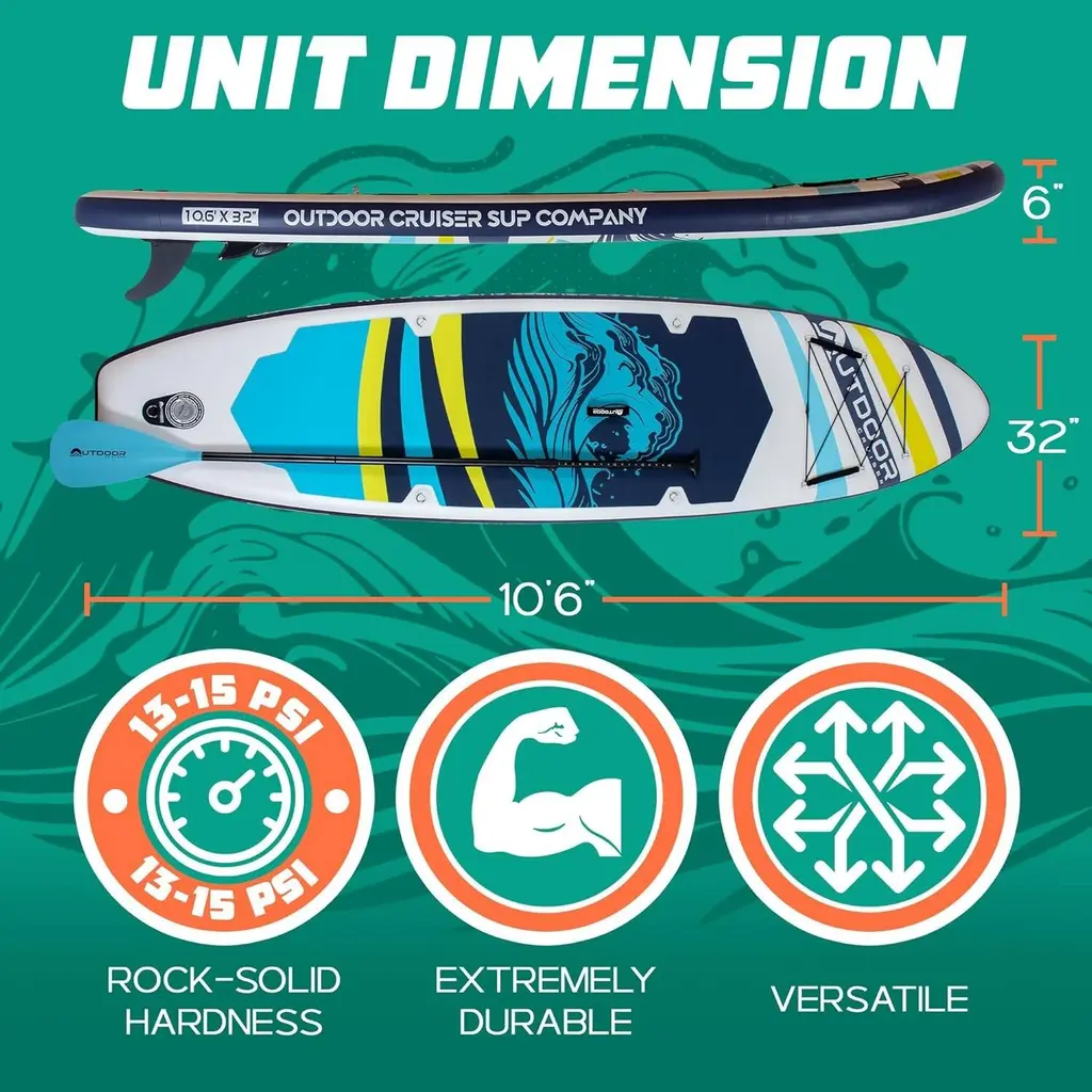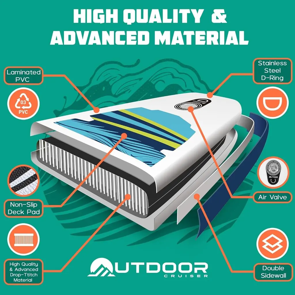 Outdoor Crusier Inflatable Stand Up Paddle Board, Ultra Portable & Lightweight, Wide Stable Non-Slip Design, - Ocean Bliss