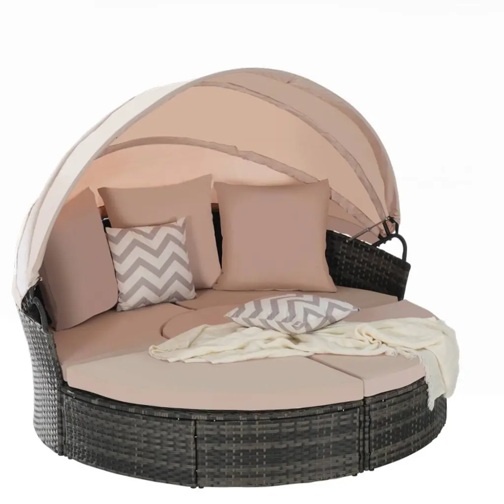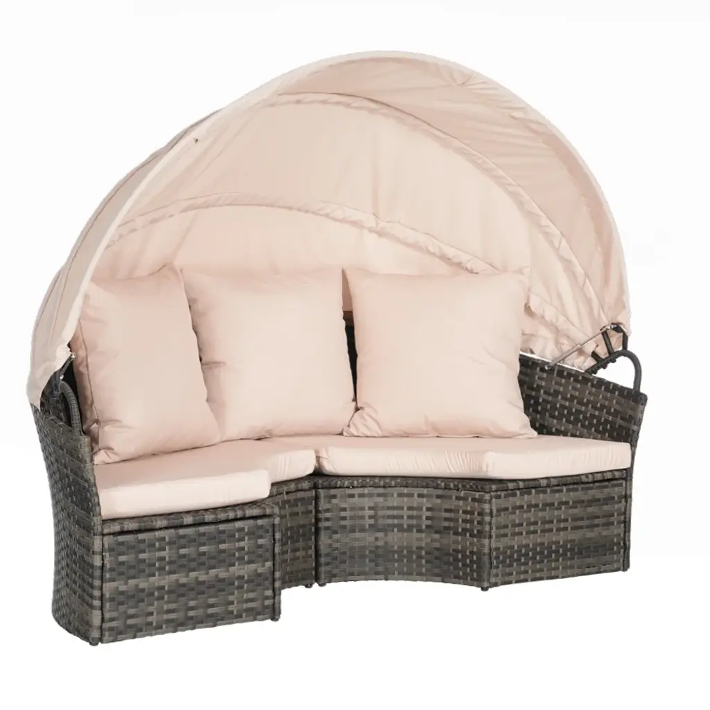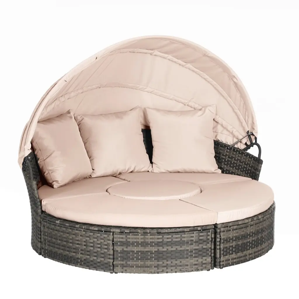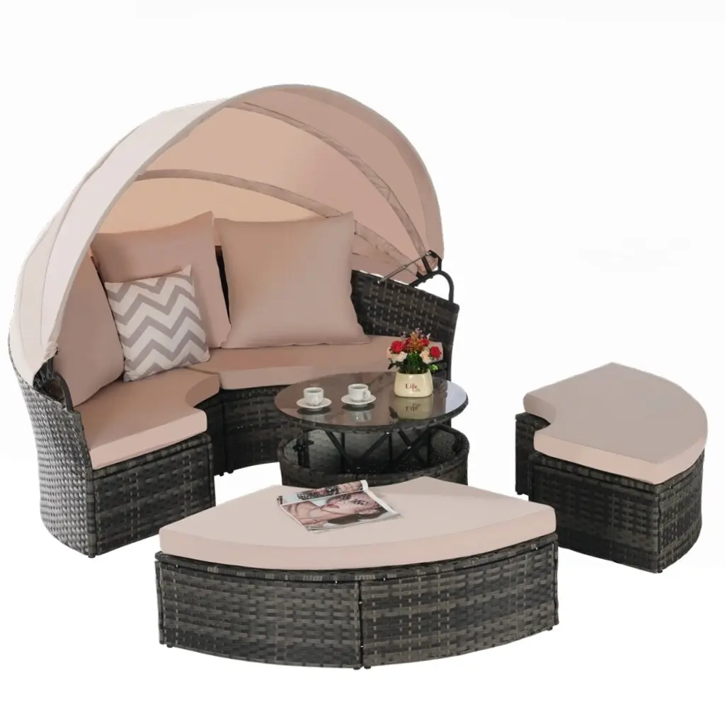 Outdoor Furniture Patio With Retractable Canopy - Beige
