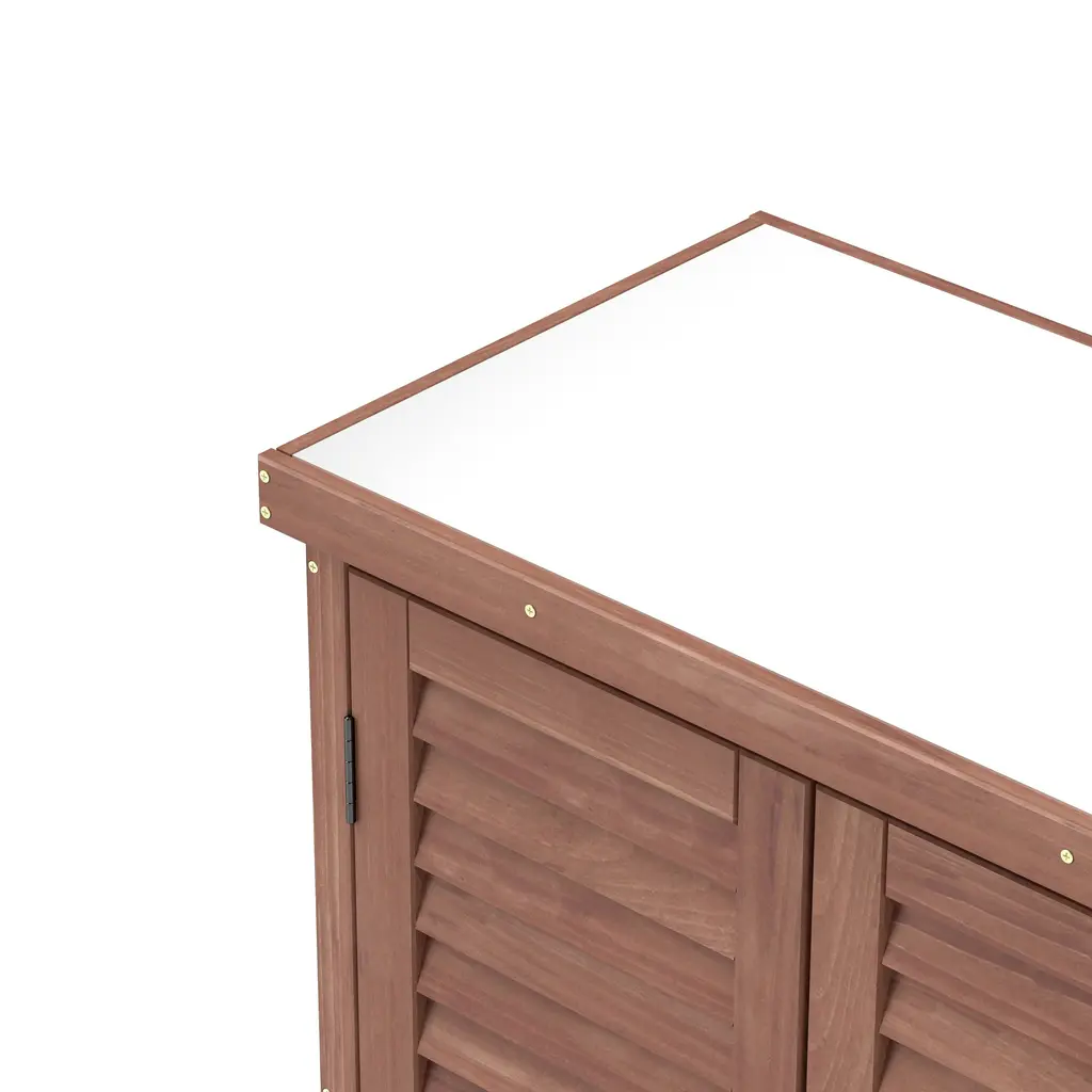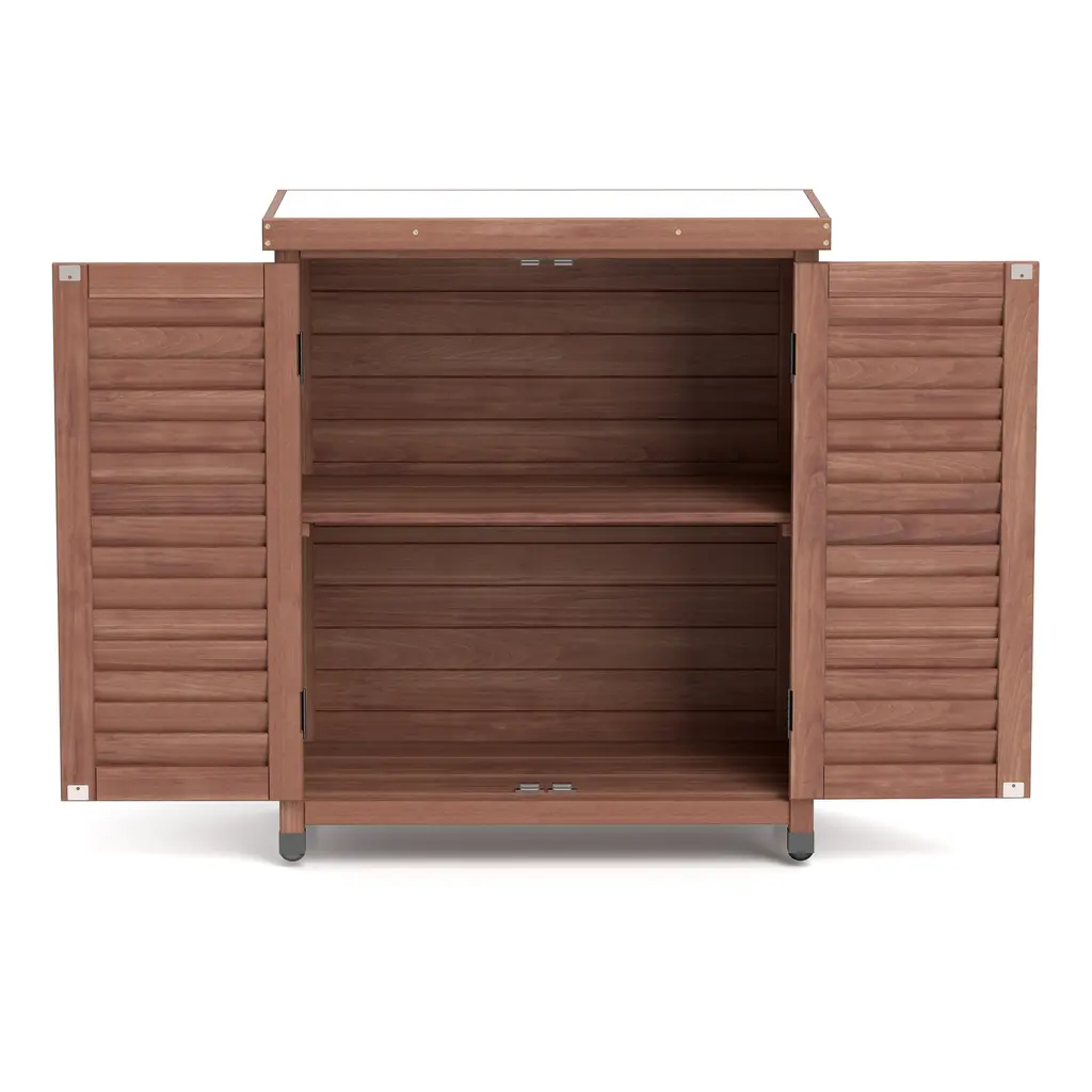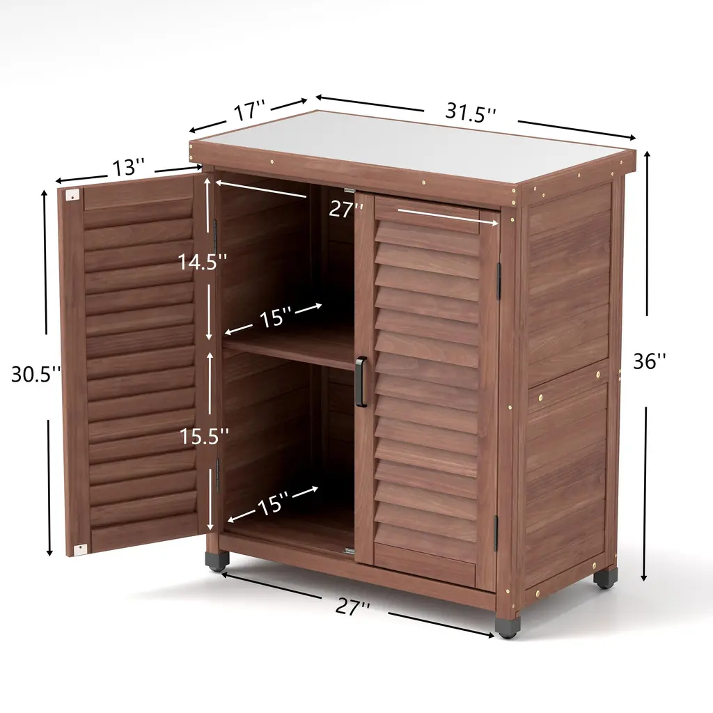 Outdoor Garden Potting Bench Table, Garden Wood Workstation With Storage Cabinet, Patio Storage Cabinet With Metal Table Top - Brown