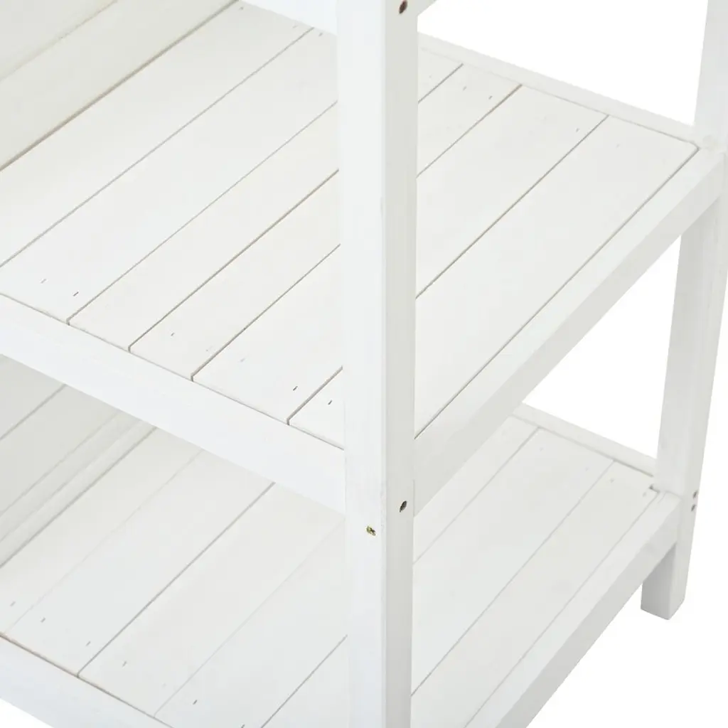 This Outdoor Garden Potting Bench Table Workstation is perfect for any backyard or mudroom. Made of 100% fir wood, it boasts a large workspace of up to 50.2 x 19.7 inches, providing ample room for all your gardening needs. With 4-tier open shelves, this potting bench also offers spacious storage to keep your small flower pots and other gardening supplies organized. It features 2 drawers and a middle cabinet with a removable shelf, perfect for holding your garden tools and soil bags. For added safety, this potting bench is designed with an anti-falling device that can be easily connected to a wall. With an overall size of 50.2 x 19.7 x 66 inches (L x W x H) and a net weight of 62.6lbs, this potting bench can support up to 110lbs on the tabletop and comes with a 12-month warranty.Features:Weight & Dimensions:Specifications:Notice: