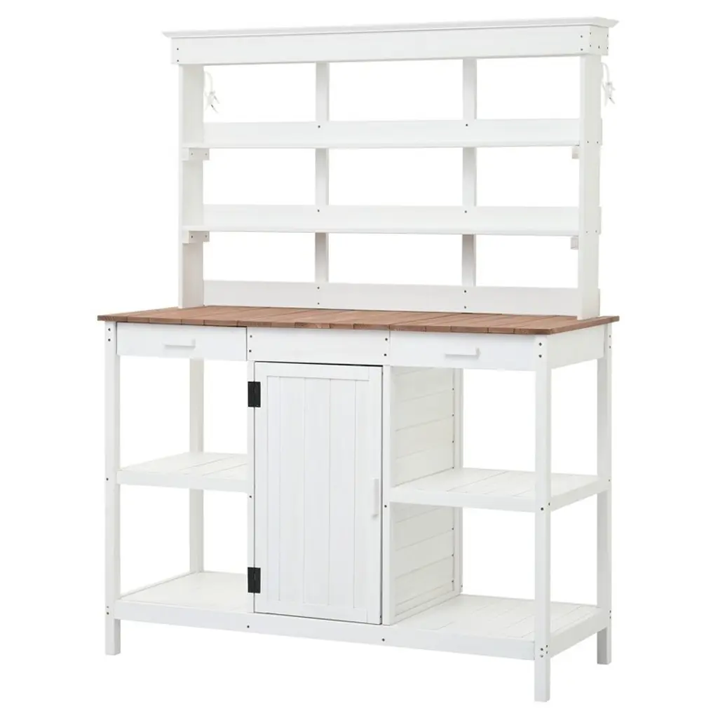 Outdoor Garden Potting Bench Table Workstation Planting Bench With 2 Drawers, Cabinet And Open Shelves For Backyard, Mudroom - White