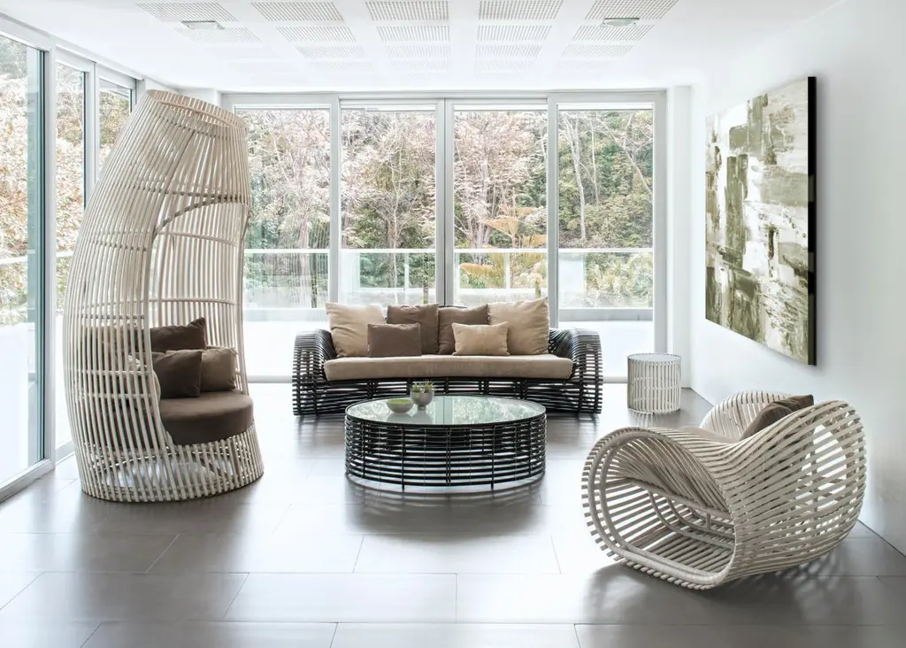 Outdoor large oval Lolah coffee table by Kenneth Cobonpue..Materials: Polyethelene, aluminum. Glass.Also available in other colors and for indoors. Dimensions: Glass 78cm x 118cm x H 10mmTable 80cm x 120 cm x H 35 cm.Created using construction techniques similar to boat-building, Lolah entices the sitter with its shapely form and structural beauty. The extensive collection won the 2005 Design for Asia Award, Asia’s highest award for design.Designer's BiographyKenneth Cobonpue is a multi-awarded furniture designer and manufacturer from Cebu, Philippines. His passage to design began in 1987, studying Industrial Design at the Pratt Institute in New York. While completing his studies, he apprenticed for a leather and wood workshop near Florence, Italy. He went on to study Furniture Marketing and Production at the Export-Akademie Baden-Württemberg in Reutlingen, Germany, under a private and state scholarship program, and subsequently worked in Bielefeld and Munich.Kenneth returned home to Cebu in 1996 to manage Interior Crafts of the Islands, Inc., a furniture design and manufacturing company founded by his mother Betty Cobonpue in 1972. Discovering that modern design could have a new face using natural fibers and materials, Kenneth created pieces of functional art, offering an alternative to the Western definition of modern design. Today, the Kennethcobonpue brand has become known globally for its unique designs and extensive roster of clientele, including Hollywood celebrities and members of royalty.With his masterful way of integrating nature, traditional craft and innovative technologies, designer and creative director Kenneth Cobonpue has earned international awards and recognition for his creative, organic, and expressive pieces. Working closely with some of the world’s leading designers, from household names to emerging talents, Kenneth has been pushing the envelope for design in the Philippines and sharing his vision to a global audience. Awards to his credit include five Japan Good Design Awards, the grand prize at Singapore International Design Competition, the Design for Asia Award of Hong Kong, the American Society of Interior Design Top Pick selection and the French Coup de Coeur award. Several of his designs were selected for several editions of the International Design Yearbook published in London and New York. Phaidon’s book entitled “& FORK” underscores Kenneth’s position as a leader of a new movement incorporating new technologies with crafts. In 2007, TIME magazine called him “rattan’s first virtuoso”. Kenneth was named the Designer of the Year in the first edition of Maison et Objet Asia held in March 2014 in Singapore.Kenneth reveals new work each year in the design shows from Milan to New York, and he speaks regularly about Southeast Asian design all over the world. He has also appeared in European television and in countless international magazines and newspapers around the world. Various Cobonpue designs have also appeared in full-length feature films and television, such as Oceans 13 and CSI.