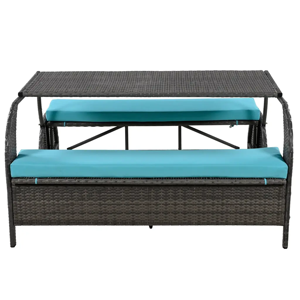 Outdoor Loveseat That Converts To Four Seats And A Table - Loveseat Size 57.1"x 24.6'' X 38'' - Blue