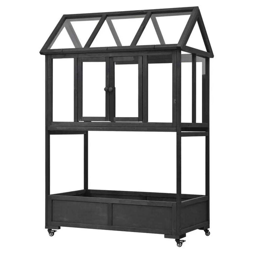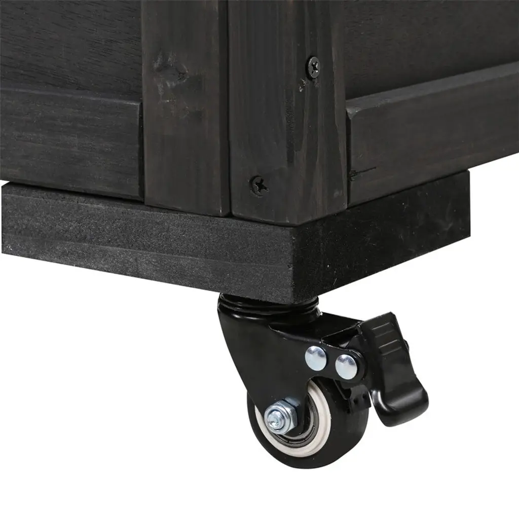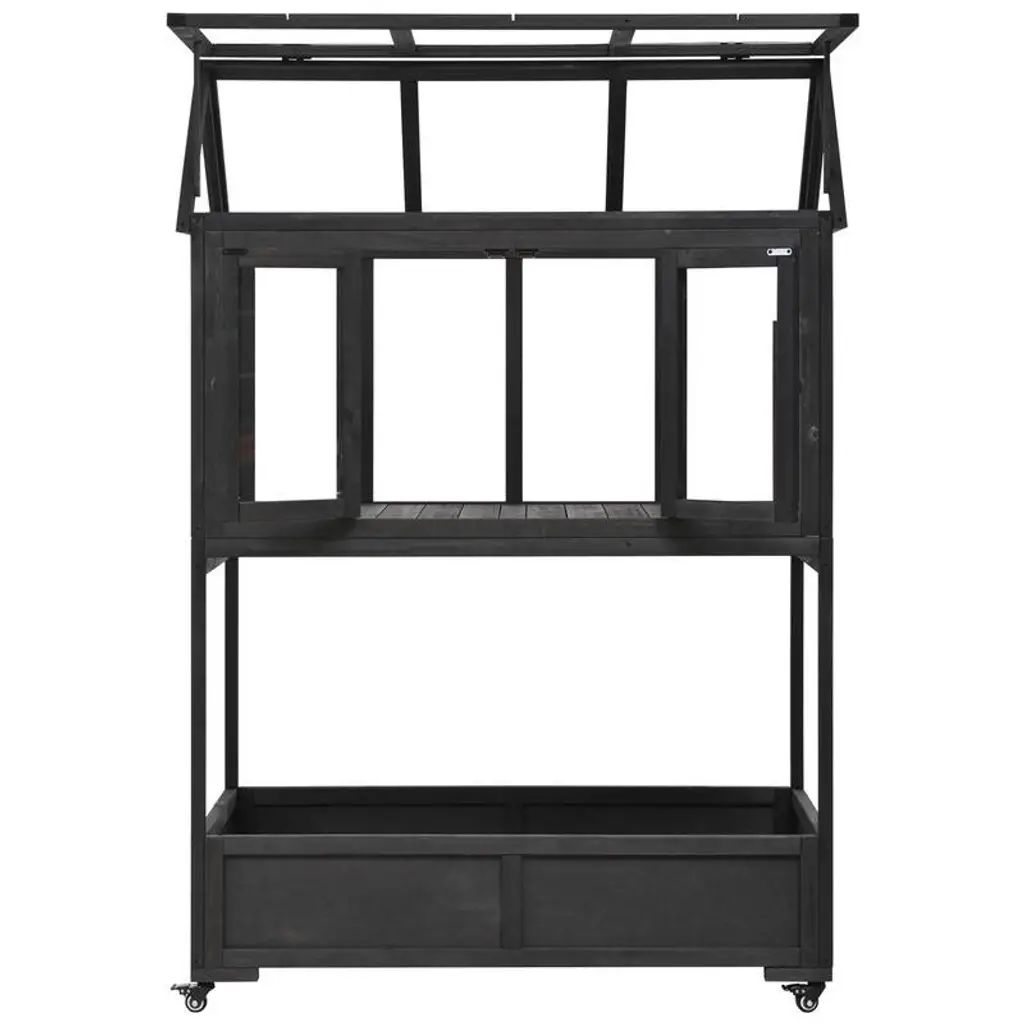Outdoor Mini Greenhouse With Openable Roof And Storage Box, Wooden Garden Portable Cold Frame With Movable Wheels - Black
