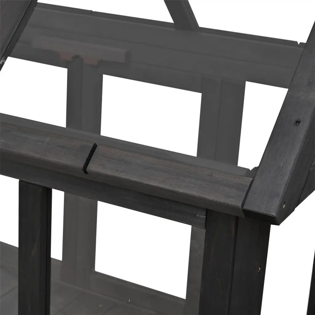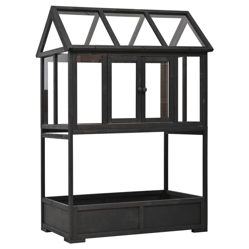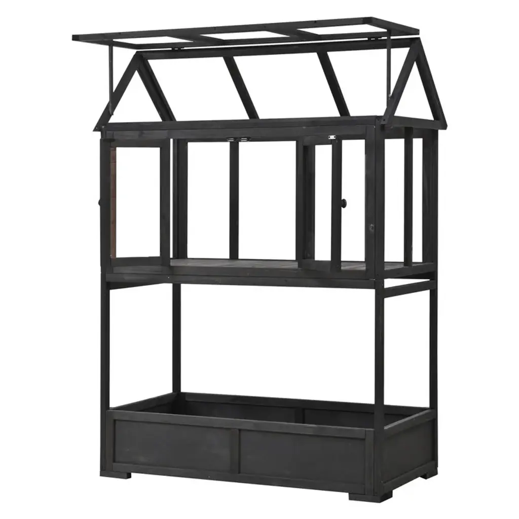 Outdoor Mini Greenhouse With Openable Roof And Storage Box, Wooden Garden Portable Cold Frame With Movable Wheels - Black