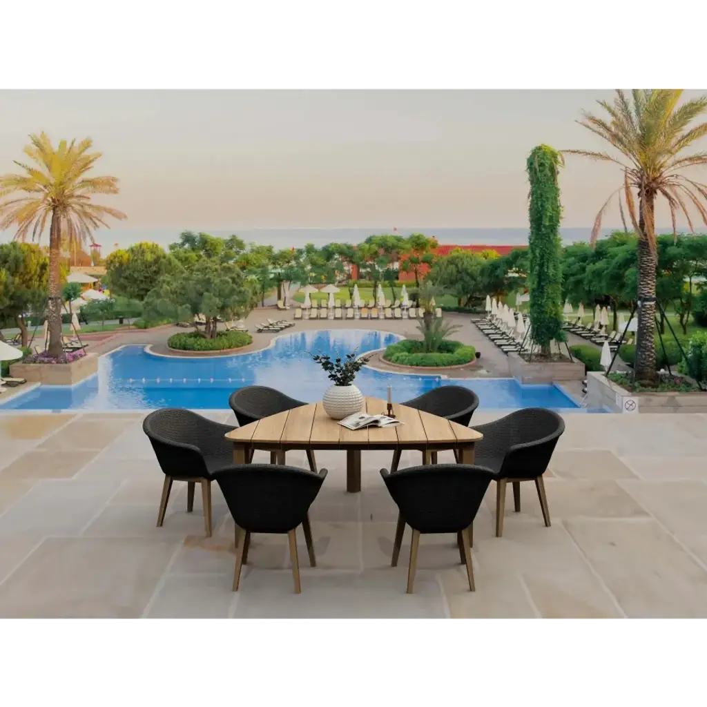 Beautifully constructed triangle table made from Anderson’s finest authentic teak wood, the Padua Table with its size and quality is the perfect fit for your outdoor patio. At over 67” in length constructed with the highest grade of natural unfinished teak, the quality of this table is simply unquestionable. With seating up to six, be sure to add matching chairs from the Padua collection - built of Synthetic Wicker and Teak Wood Base that comes in five color options: Black, White, Red, Brown and Yellow. Synthetic Wicker and authentic teak wood ensures outdoor fitness and quality to last generations.