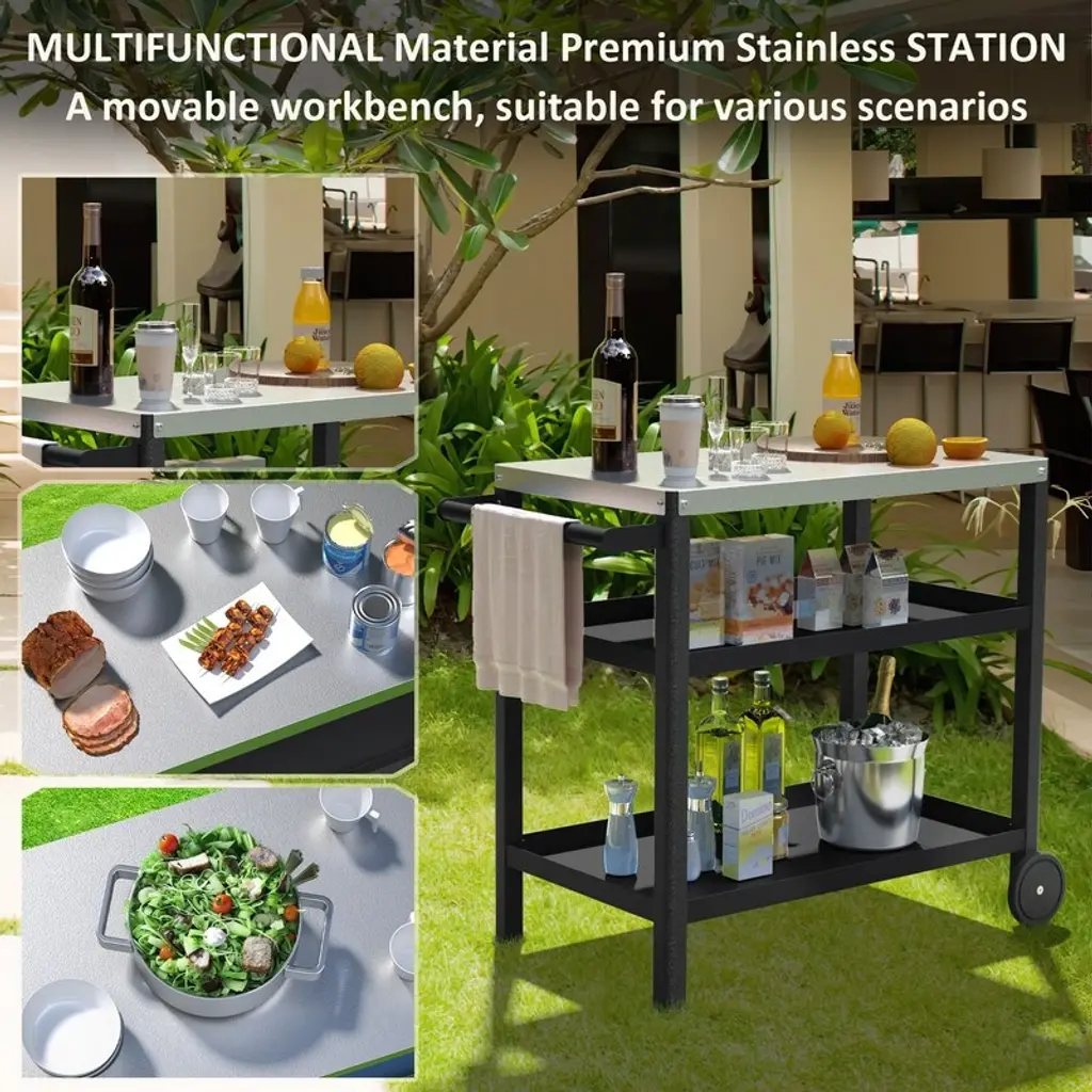 Outdoor Prep Rilling Grill Cart - Frosted Surface, High Load Capacity, Portable & Durable Hdpe Material, 3-Tier Bbq Cart - N/a - Black