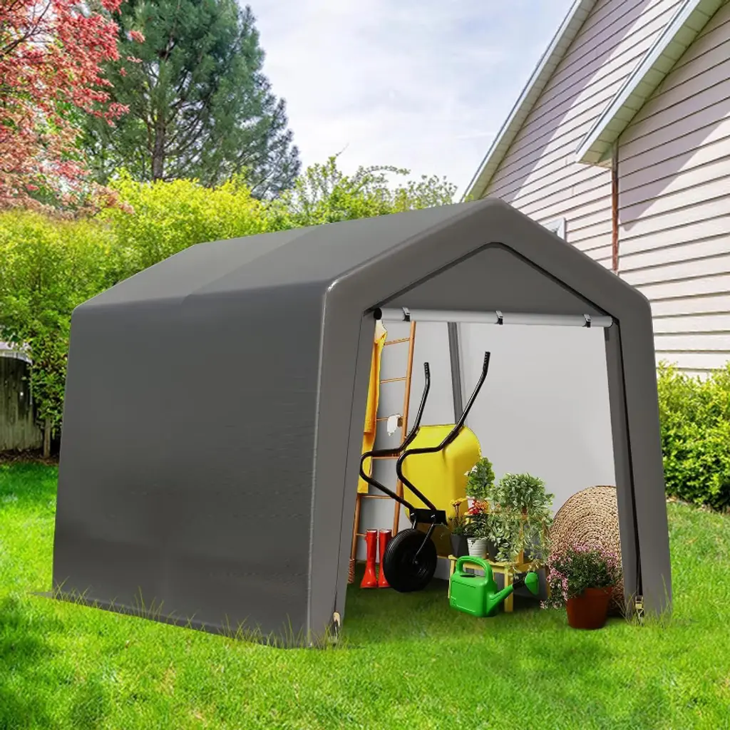 Tired of leaving your valuable gear exposed to the elements? This heavy-duty outdoor storage shed is built to last, with a reinforced 34x34mm galvanized steel frame, thickened base pipes, and rust-resistant joints—engineered for rock-solid stability on grass, concrete, or gravel. The gray powder-coated finish doesn’t just look sharp; it stands up to wind, rain, and sun season after season. Protection meets practicality with dual-layer PE fabric—UV-resistant dark gray outside to block fading and a bright white interior to make finding your tools, bikes, or lawn gear effortless. Triple-stitched seams keep moisture out while allowing airflow, so stored items stay dry and fresh. The roll-up zipper door gives you quick access, while the adjustable top buckle lets you vent heat on sunny days, preventing stuffiness inside. Need space? At 8x8x7.7 feet, this portable shelter fits a riding mower, four bicycles, or your patio furniture with room to spare. Reinforced floor bars keep everything sturdy, even under heavy loads. And setup? A breeze—no tools required, just snap the pre-drilled frame together in under an hour. When you’re done, it folds down to a compact 4.6-foot bundle for easy storage or transport—perfect for rotating between your backyard, garage, or even a camping trip. Whether you’re storing power tools, sports equipment, or outdoor furniture, this shed keeps your belongings secure and organized. Finally, a storage solution that’s as tough as your lifestyle—without the hassle. Get yours today and reclaim your space!