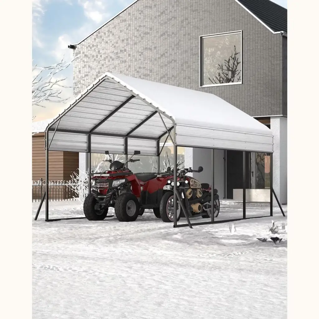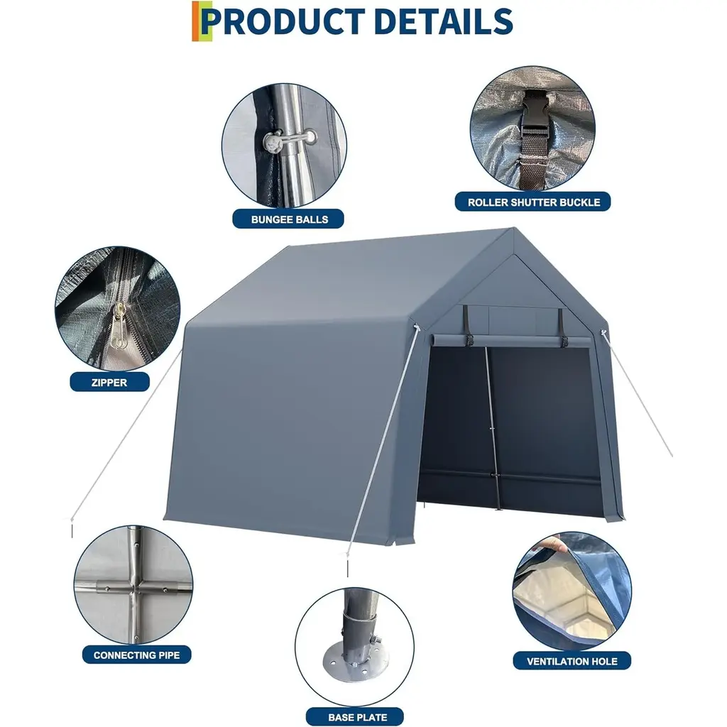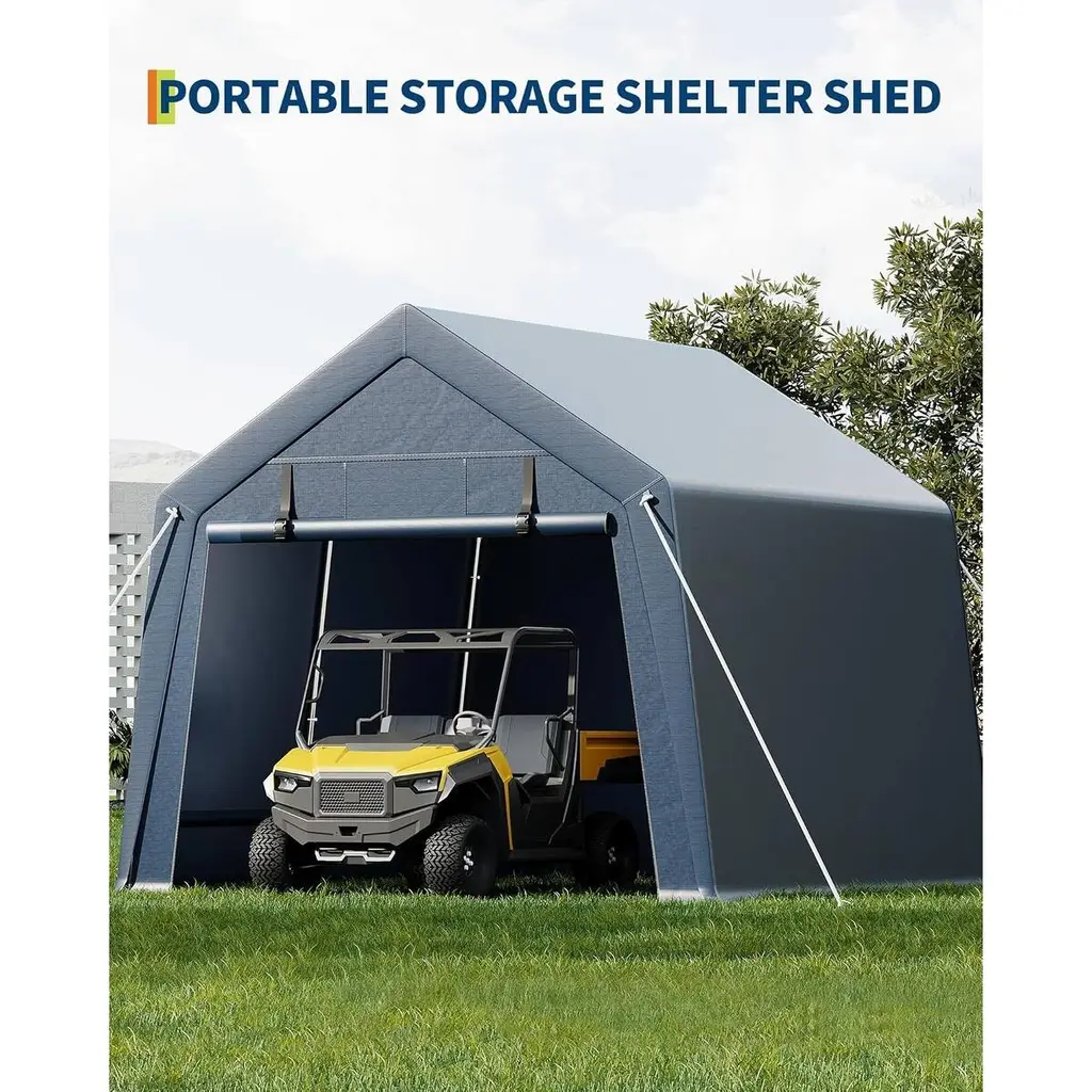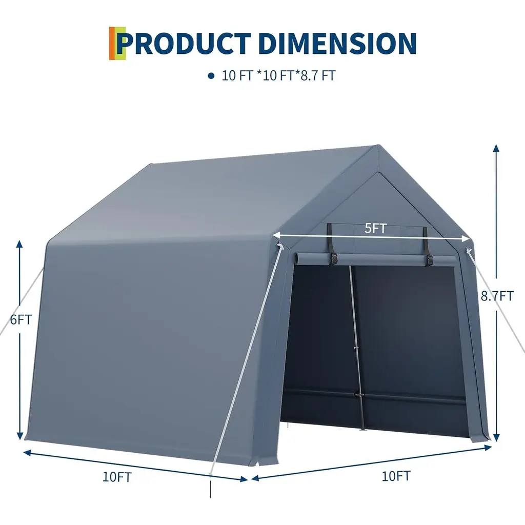 Outdoor Storage Shed, Portable Carport With Roll-Up Ventilated Zipper Door And Windows, Heavy Duty Waterproof Tarp - 10*10ft