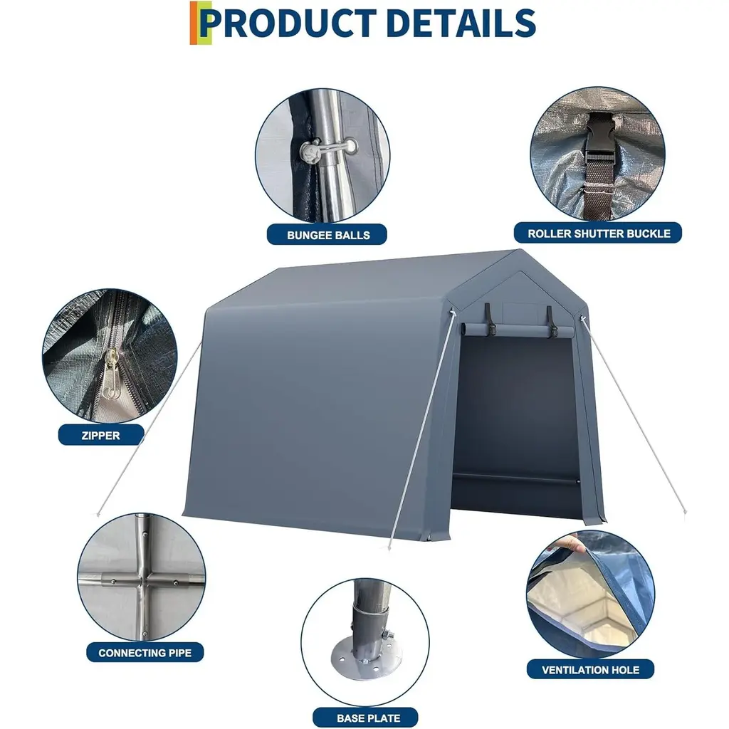 Outdoor Storage Shed, Portable Carport With Roll-Up Ventilated Zipper Door And Windows, Heavy Duty Waterproof Tarp - 6*8ft