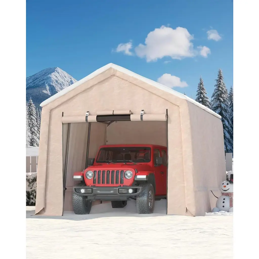 Outdoor Storage Shed, Portable Carport With Roll-Up Ventilated Zipper Door And Windows, Heavy Duty Waterproof Tarp - 7*10ft
