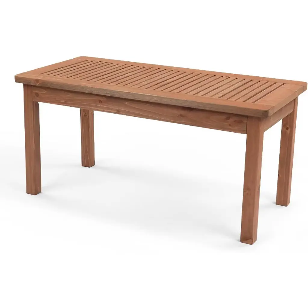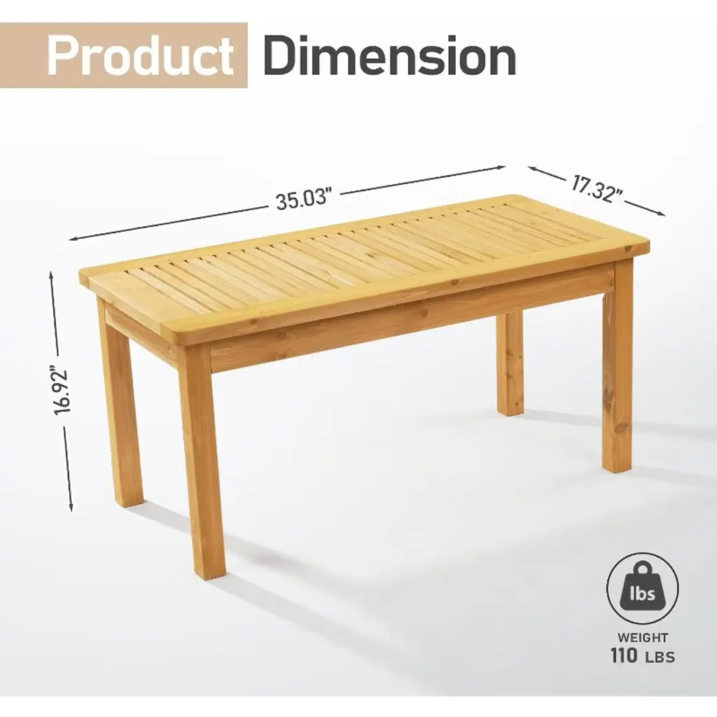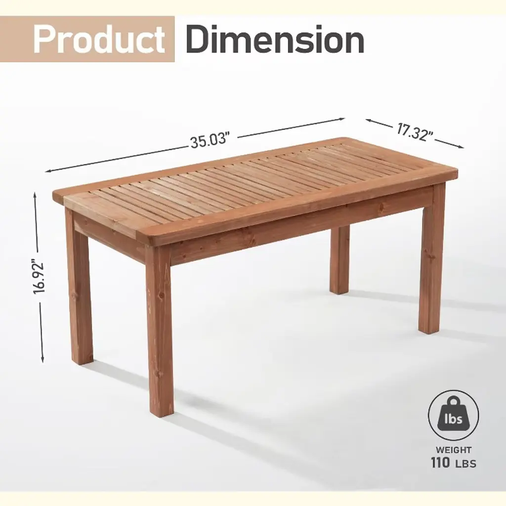 Outdoor Wood Coffee Table, 35" Farmhouse Side Table For Patio, Solid Cedar Wood Accent Table With Slatted Tabletop (Brown)