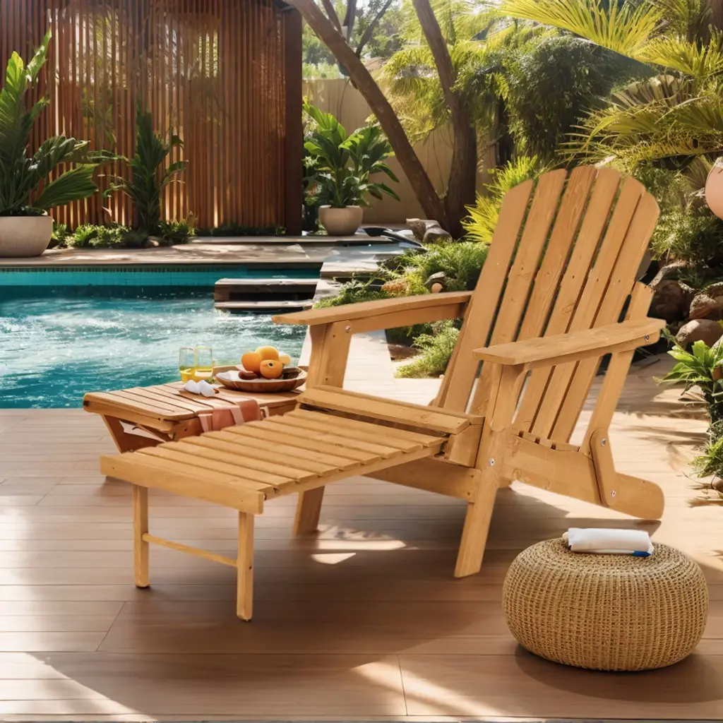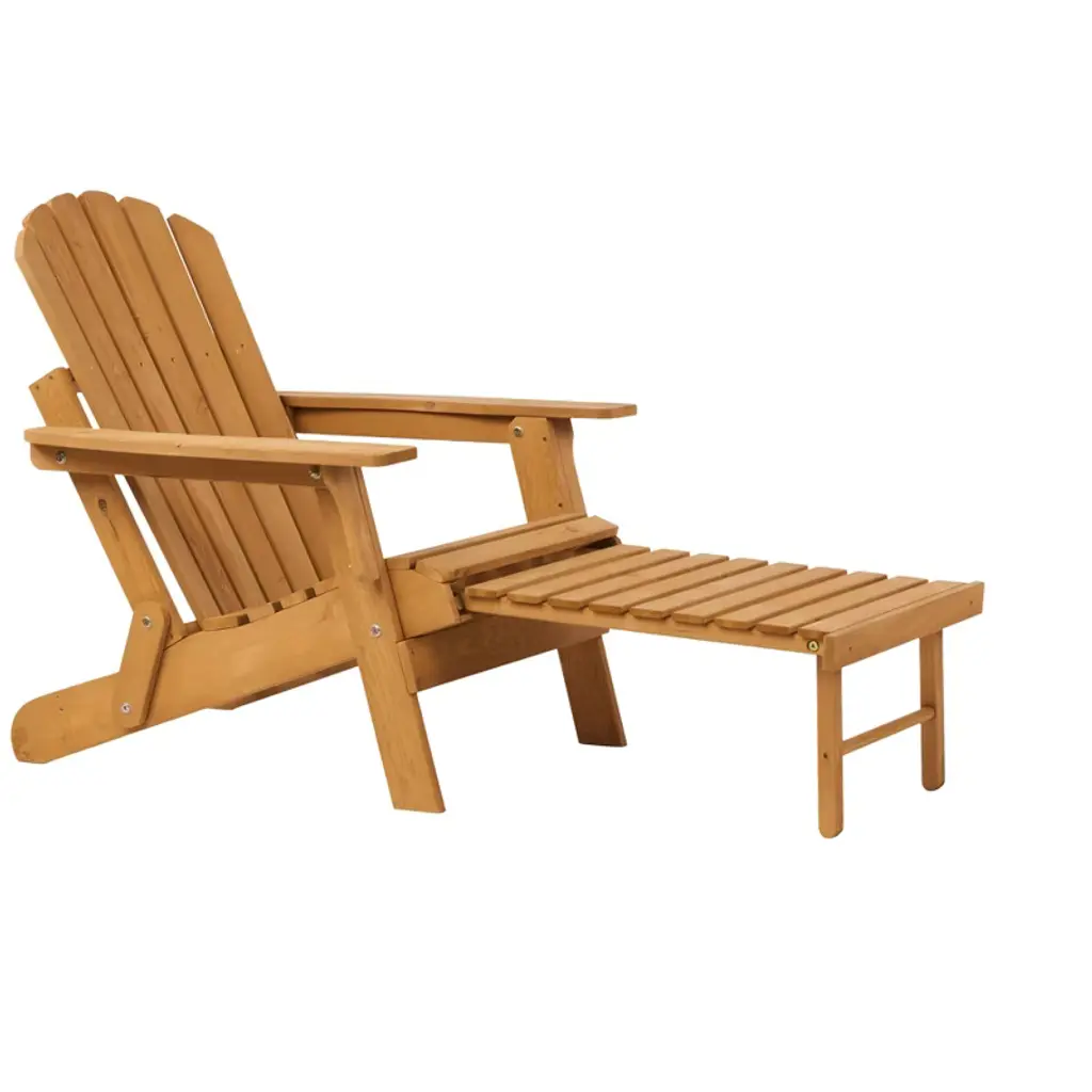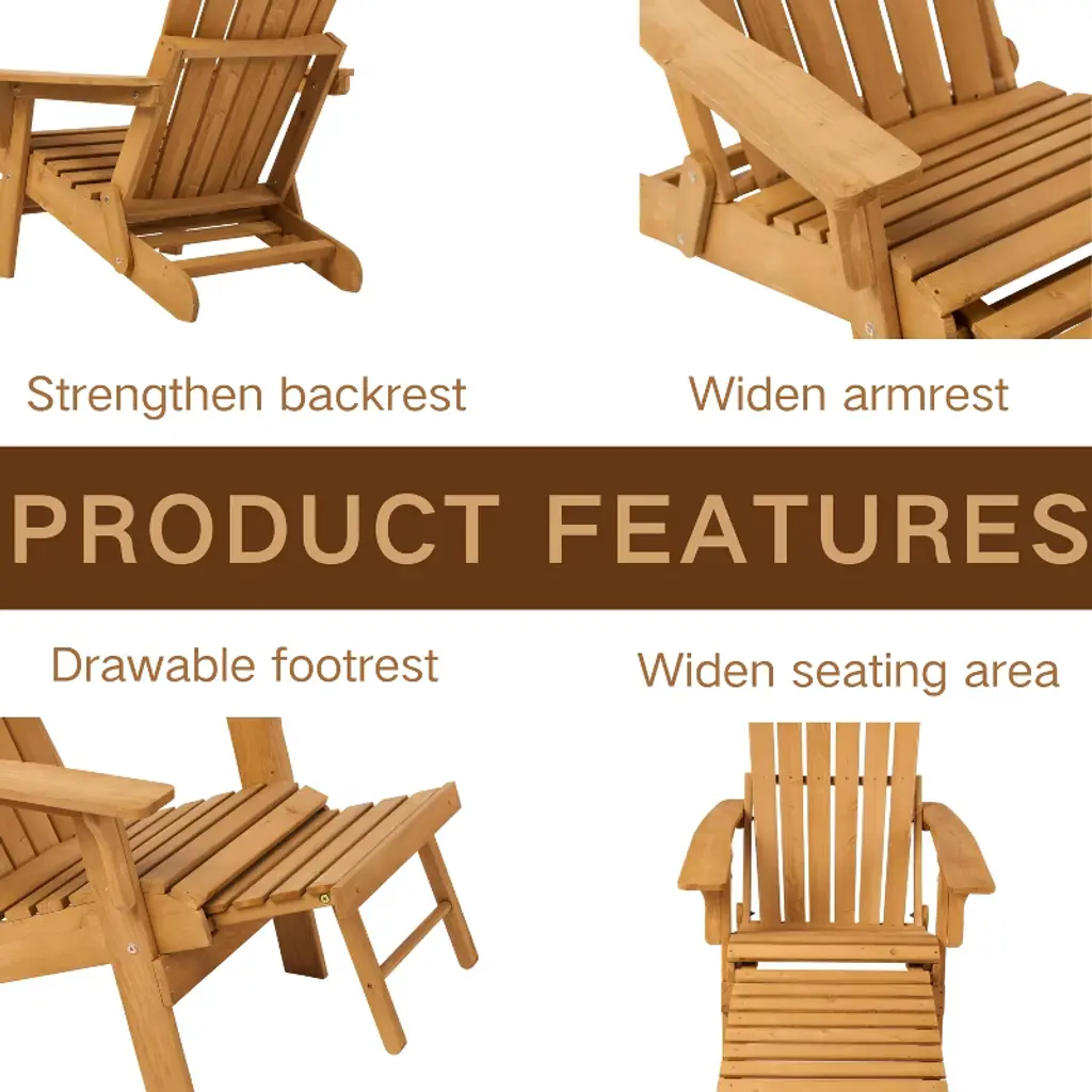 Outdoor Wooden Folding Adirondack Chair With Retractable Ottoman, Pre-assembled Backrest & Seatboard, Wood Patio Chair For Garden Backyard Porch Pool
