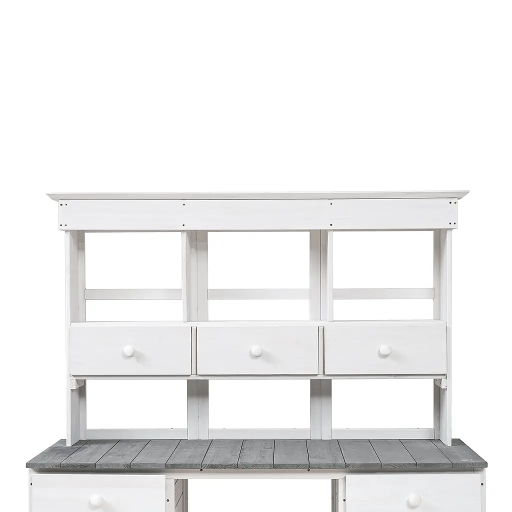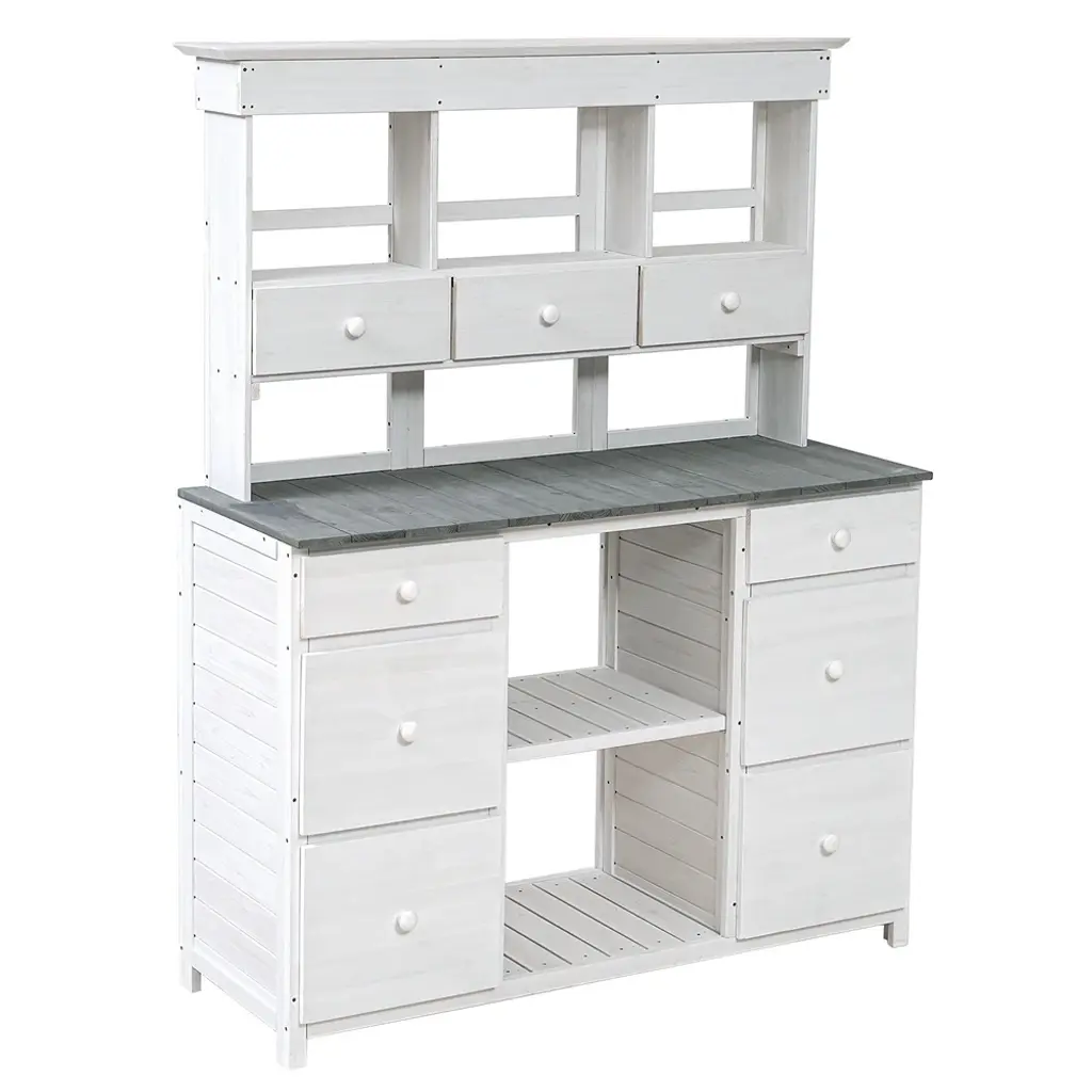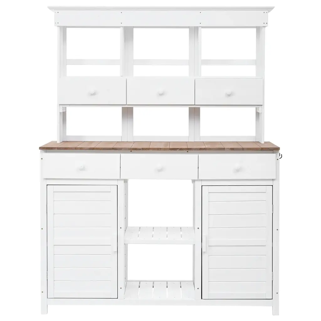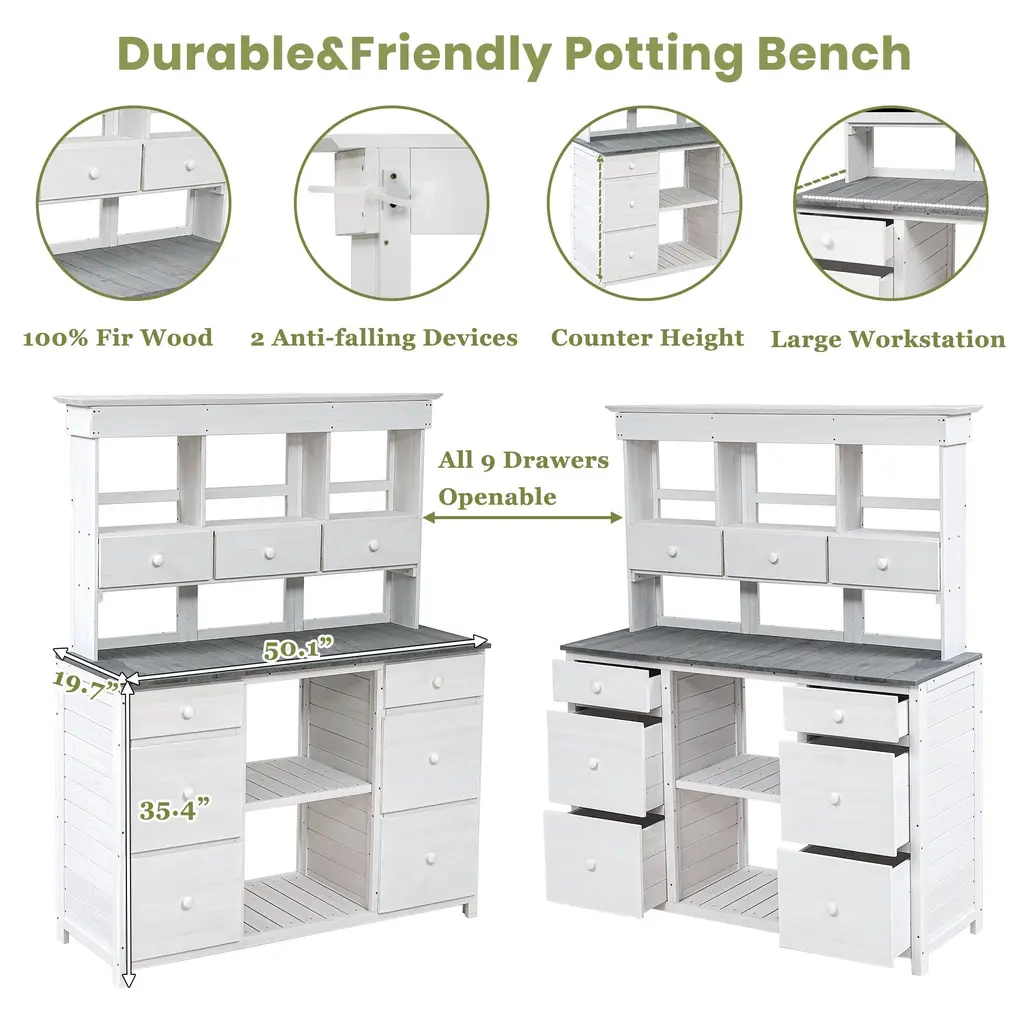 Outdoor Wooden Potting Bench Table With 2 Drawers And Open Shelves - White
