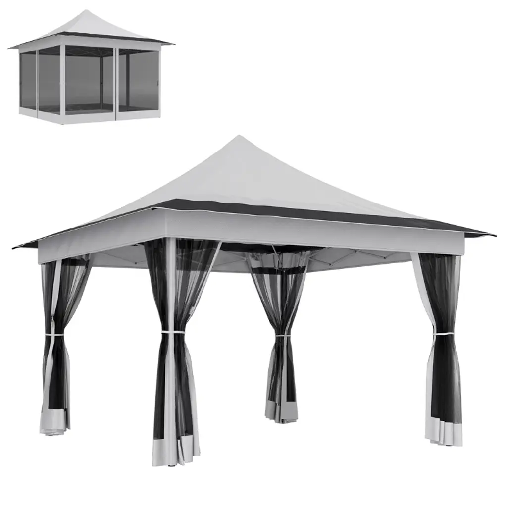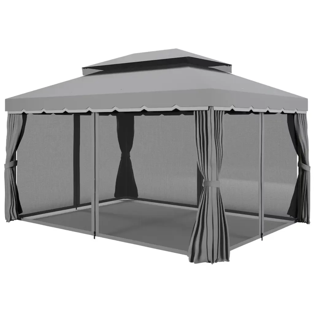 Outsunny 10' X 13' Patio Gazebo, 2-tier Polyester Roof, Vented Canopy, Mesh, Portable Aluminum Frame For Outdoor, Gray