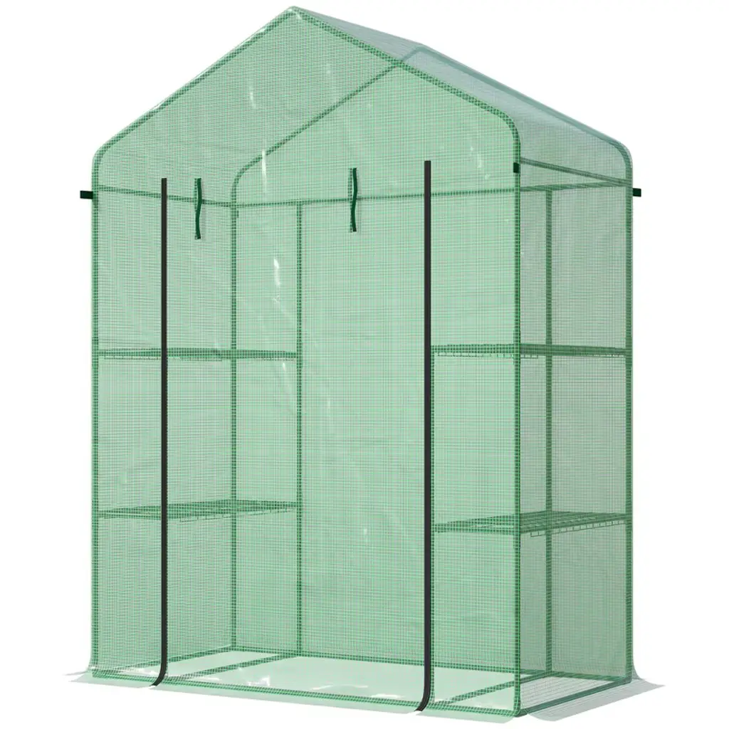Outsunny 56" X 29" X 77" Walk-in Greenhouse Kit, Portable Green House With 3 Tier Shleves, Roll-up Door, Pe Cover For Backyard Garden, Green
