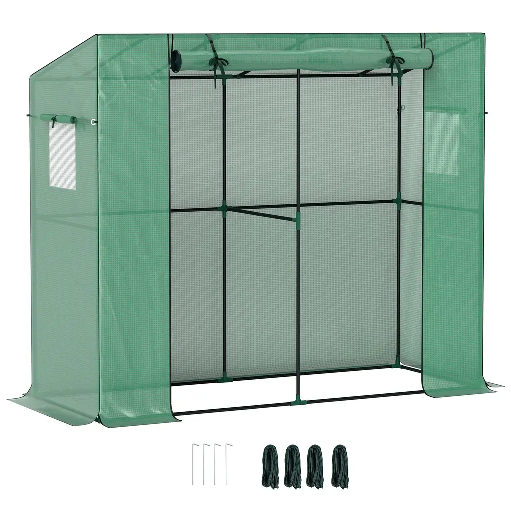 Outsunny 6.6' X 2.5' X 5.6' Lean-To Small Greenhouse For Outdoors, Portable Greenhouse With Uv-Resistant Pe Cover, Walk-In - Steel - Portable